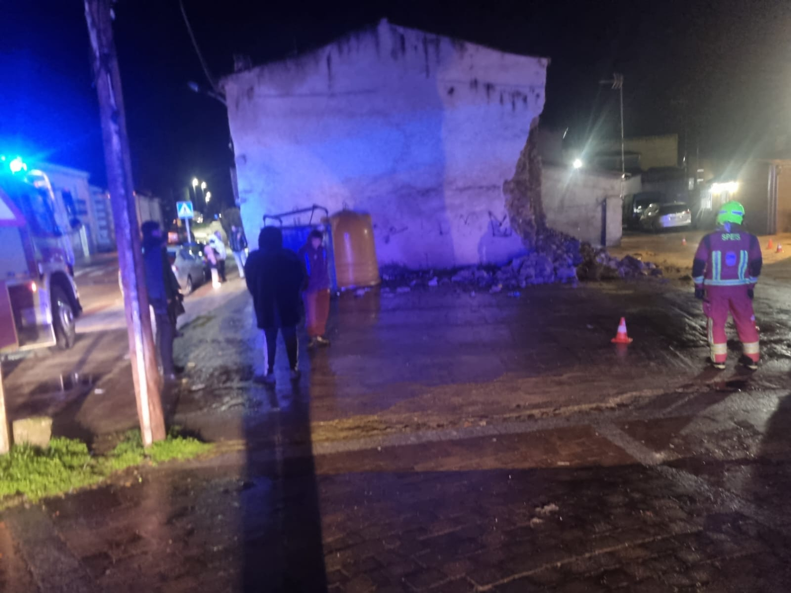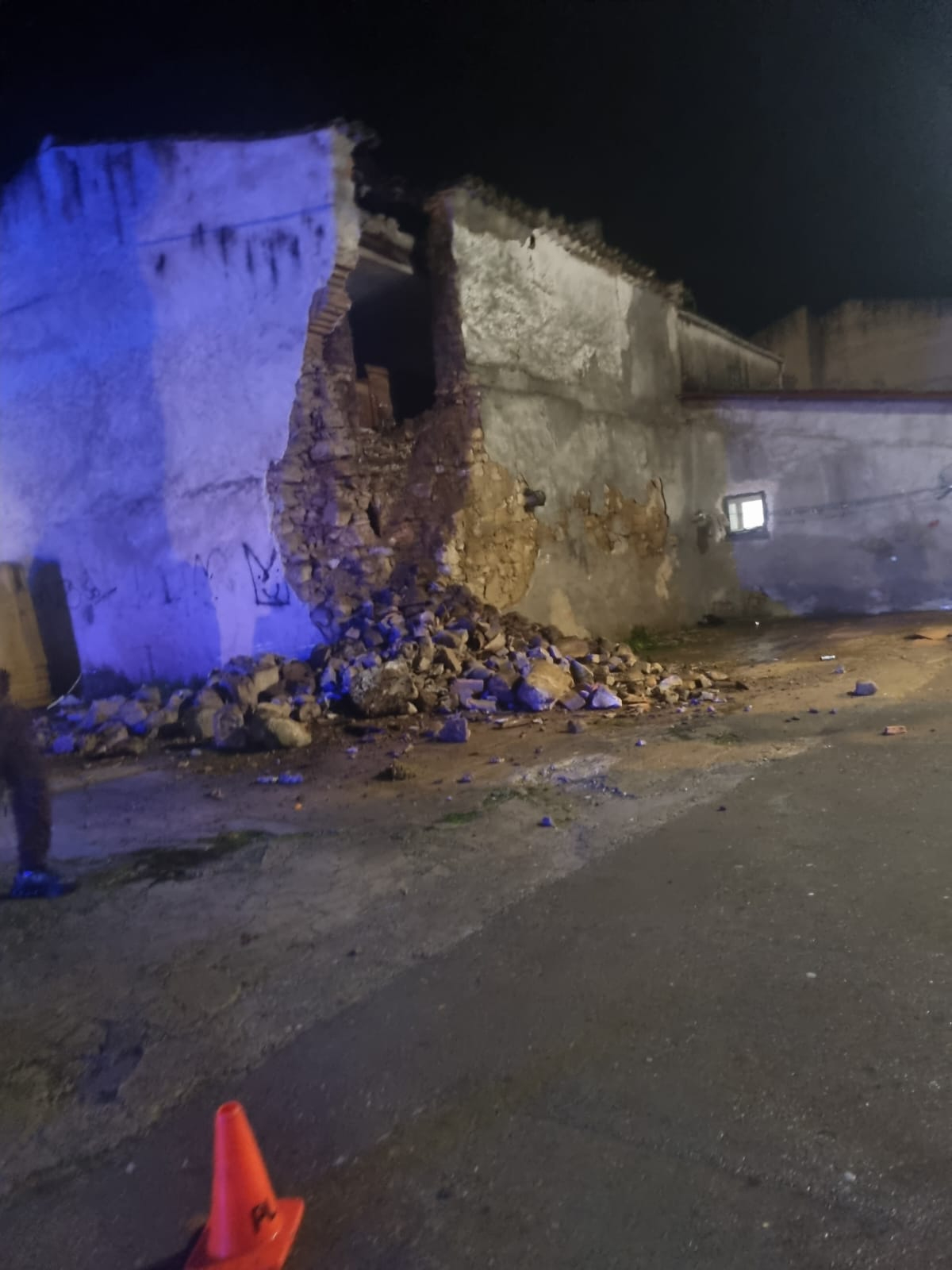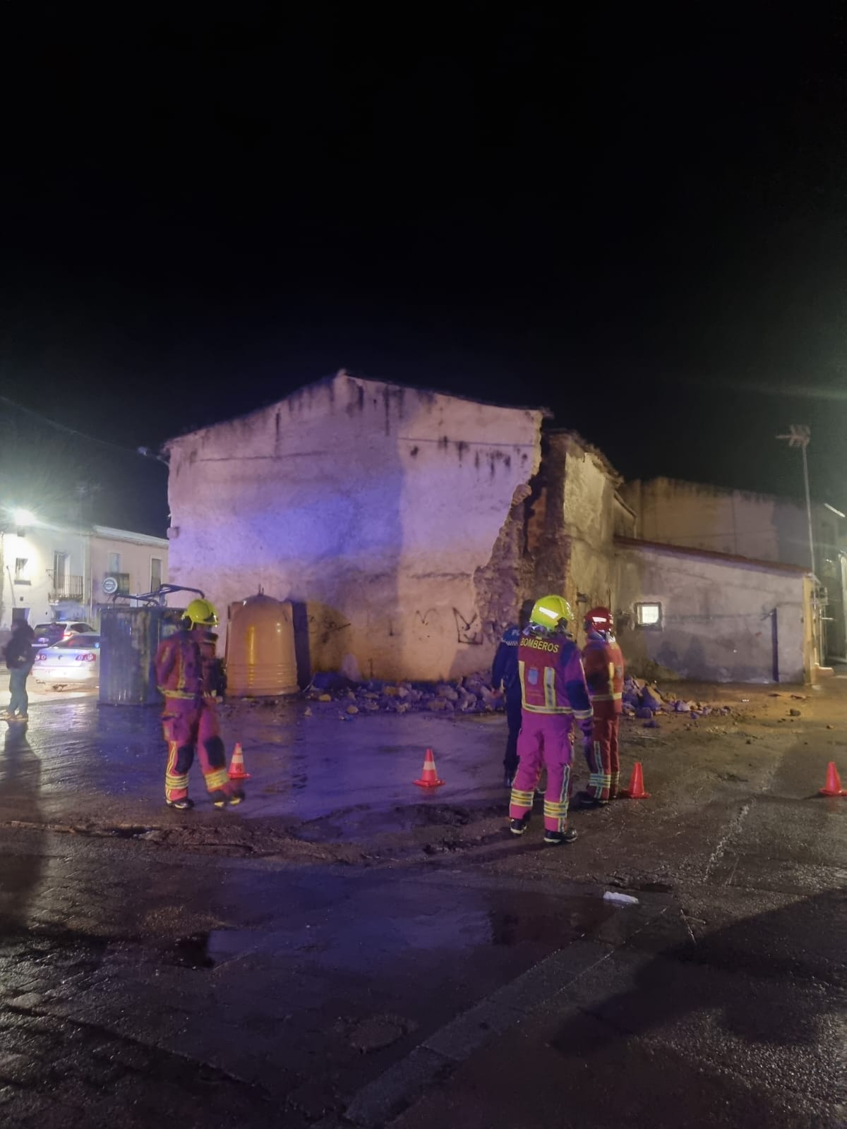 La tranquilidad de la noche del viernes, 23 de enero, se vio interrumpida en el Barrio El Puente debido al colapso parcial de un muro en de la esquina de atras de un edificio de la zona. El incidente se produjo en un inmueble situado a la derecha de la salida del Puente Romano, según se cruza el viaducto desde el casco histórico.