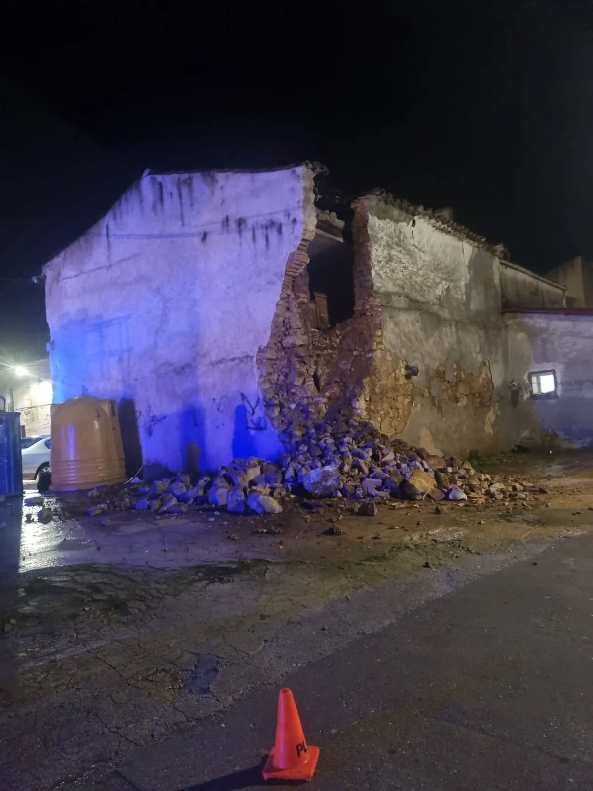 La tranquilidad de la noche del viernes, 23 de enero, se vio interrumpida en el Barrio El Puente debido al colapso parcial de un muro en de la esquina de atras de un edificio de la zona. El incidente se produjo en un inmueble situado a la derecha de la salida del Puente Romano, según se cruza el viaducto desde el casco histórico.