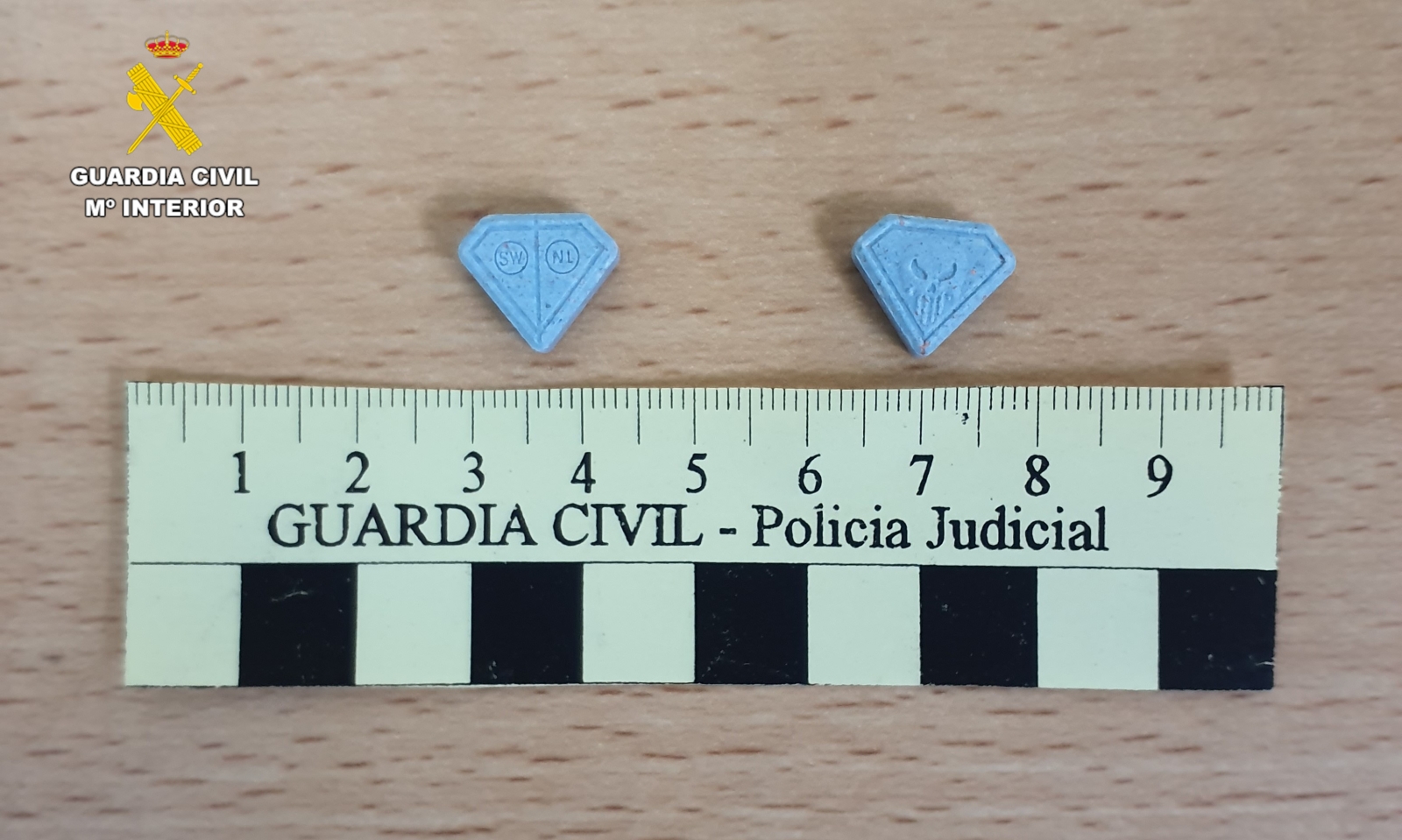 El análisis preliminar de la sustancia confirmó que se trataba de éxtasis de la variedad conocida como "Blue Punisher". Ante este hallazgo, se procedió a la incautación de la droga y a la inmediata detención del varón como presunto autor de un delito de tráfico de sustancias estupefacientes.