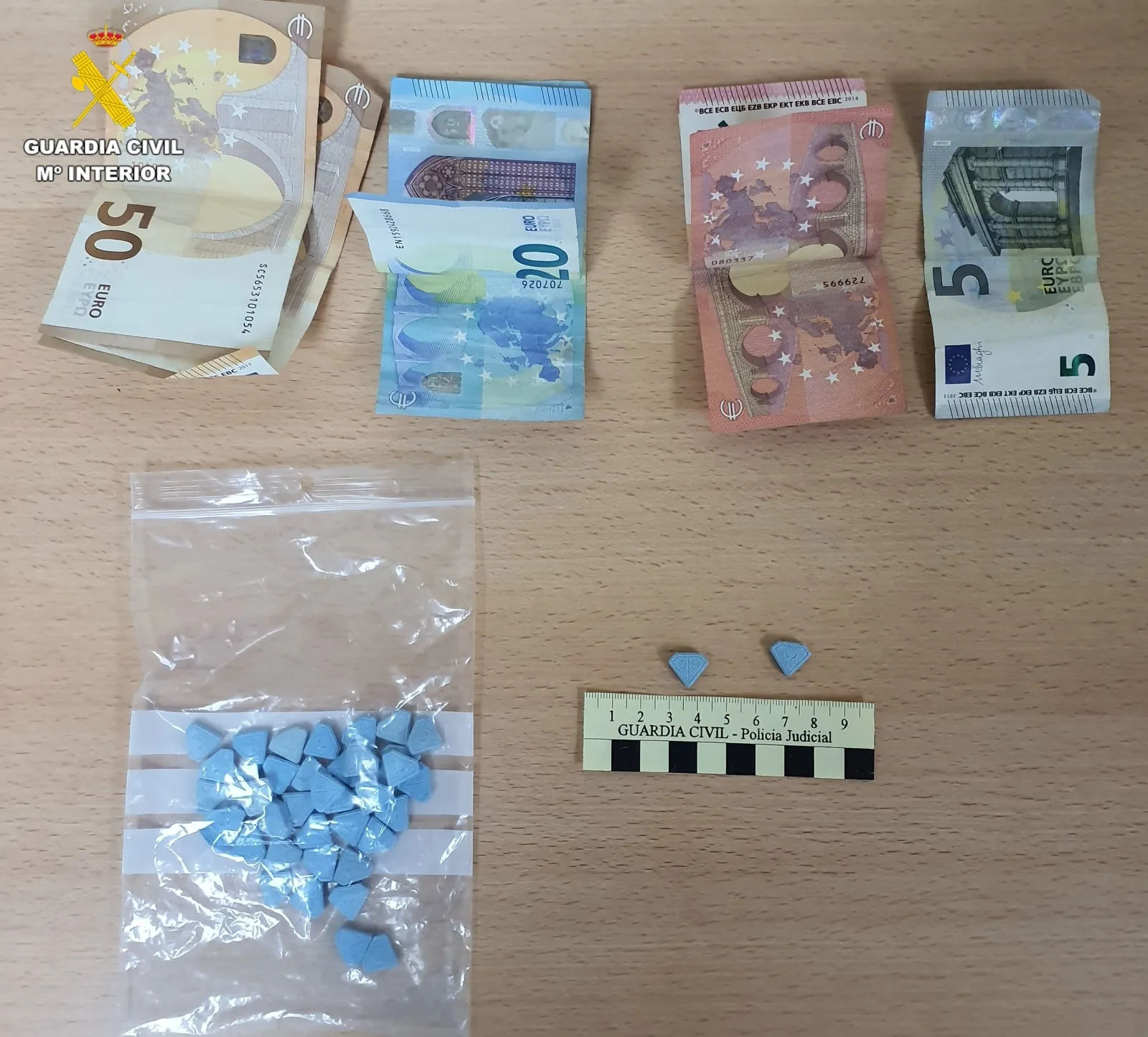 Al percatarse de la presencia policial, uno de los integrantes del grupo intentó alejarse del lugar para eludir la actuación de los agentes, aunque sin éxito. Tras interceptarlo, los guardias civiles procedieron a realizar un registro de sus pertenencias, momento en el que hallaron una bolsa que contenía un total de 42 pastillas supuestamente psicotrópicas.