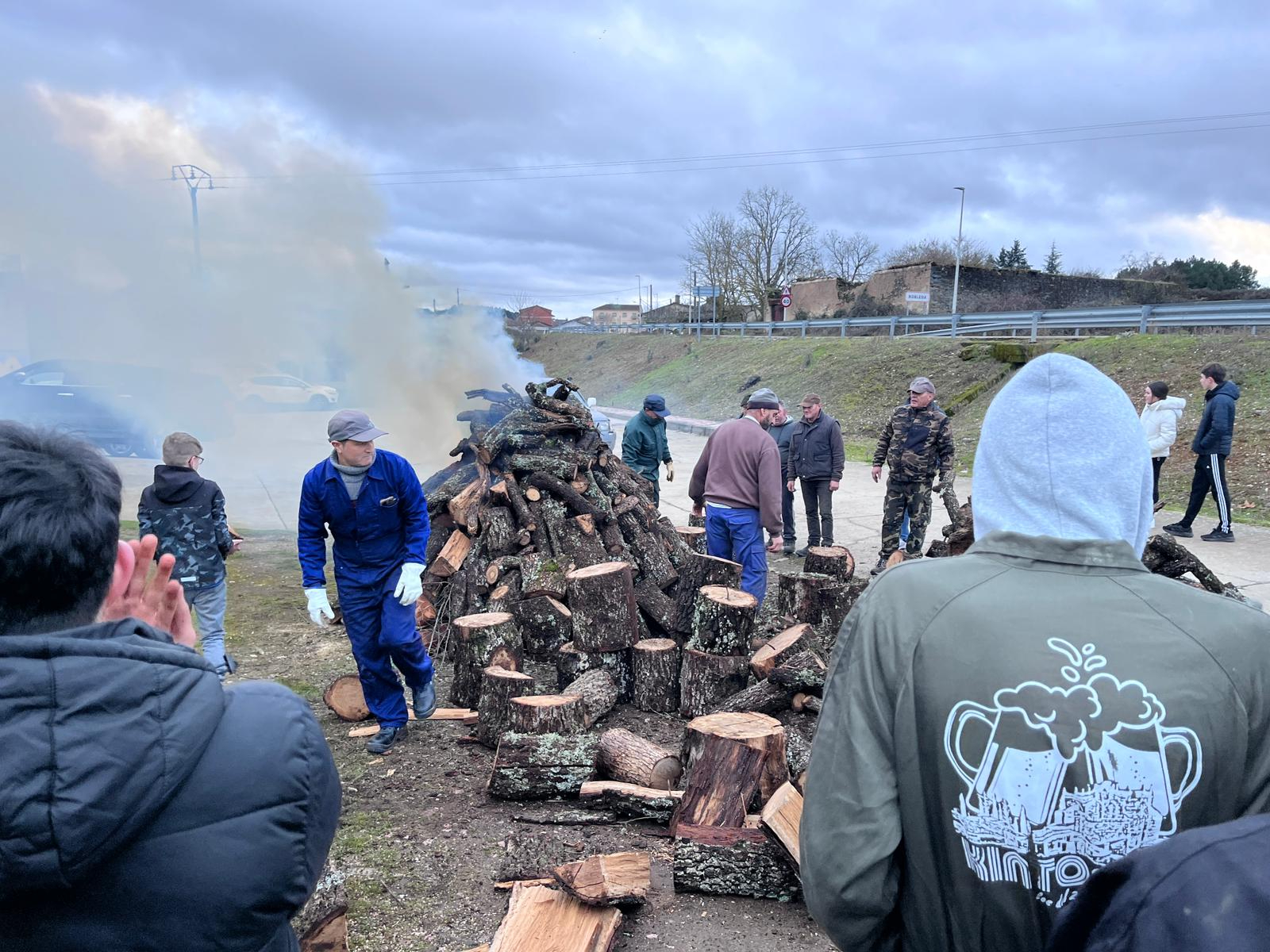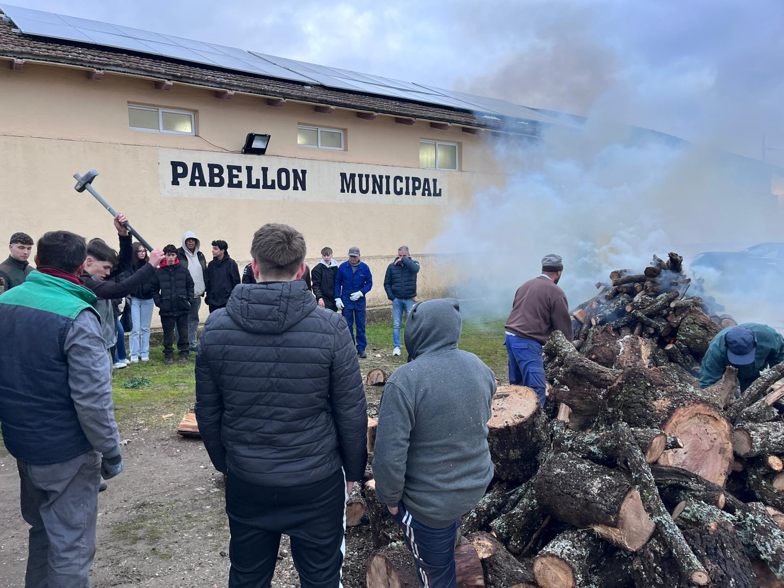 La actividad comenzó por la tarde, cuando el grupo de quintos se desplazó hasta el paraje de la Dehesa de Arriba. Cumpliendo con el rito anual, se encargaron de la recogida y el transporte de la leña necesaria, una labor colaborativa que marca el inicio de la celebración. Tras este trabajo de campo, la comitiva regresó al pueblo para ultimar los preparativos del festejo.