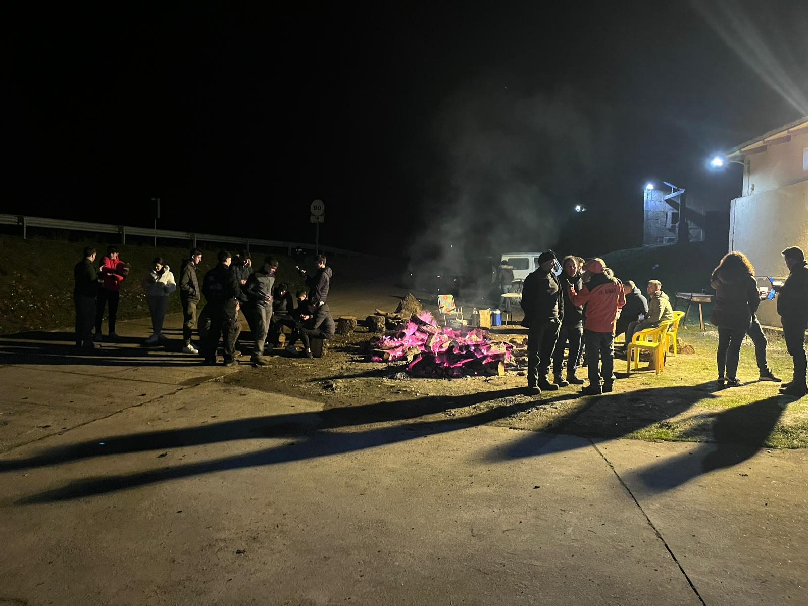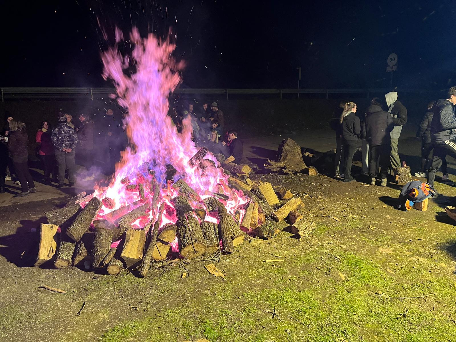 El punto neurálgico de la celebración fue el entorno del pabellón municipal, donde se instaló y prendió la gran hoguera con la madera recolectada horas antes. El calor del fuego congregó a numerosos vecinos que quisieron acompañar a los jóvenes en su año de quintos.