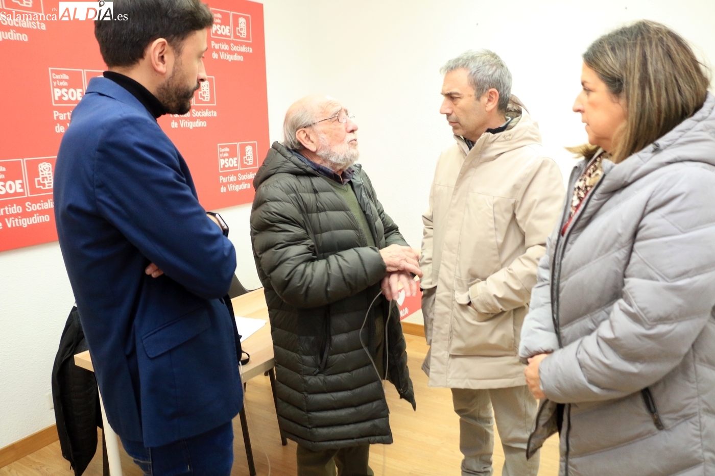 En la visita han participado, además de Fran Díaz, los integrantes de la lista socialista Noelia Merino, alcaldesa de Carrascal de Barregas, y Miguel Ángel Luengo, alcalde de La Alberca. Junto a ellos ha estado el anfitrión y también candidato a las Cortes, Javier Muñiz, alcalde de Vitigudino. El objetivo principal de este desplazamiento ha sido, según ha explicado Díaz, tener una "primera toma de contacto" directa con los compañeros de la comarca para conocer de primera mano "cuáles son las principales problemáticas y cuáles son las principales demandas".