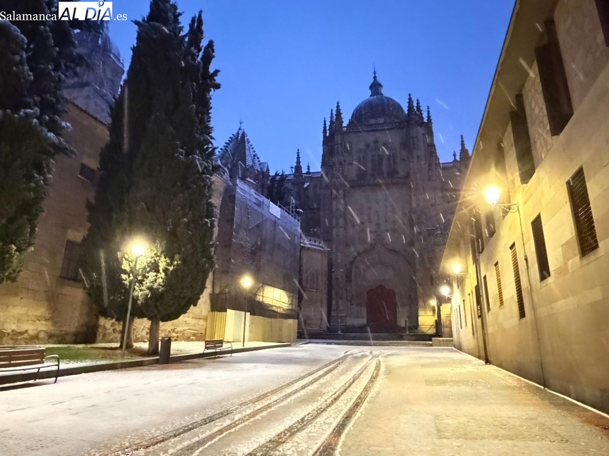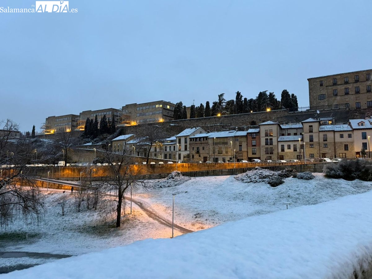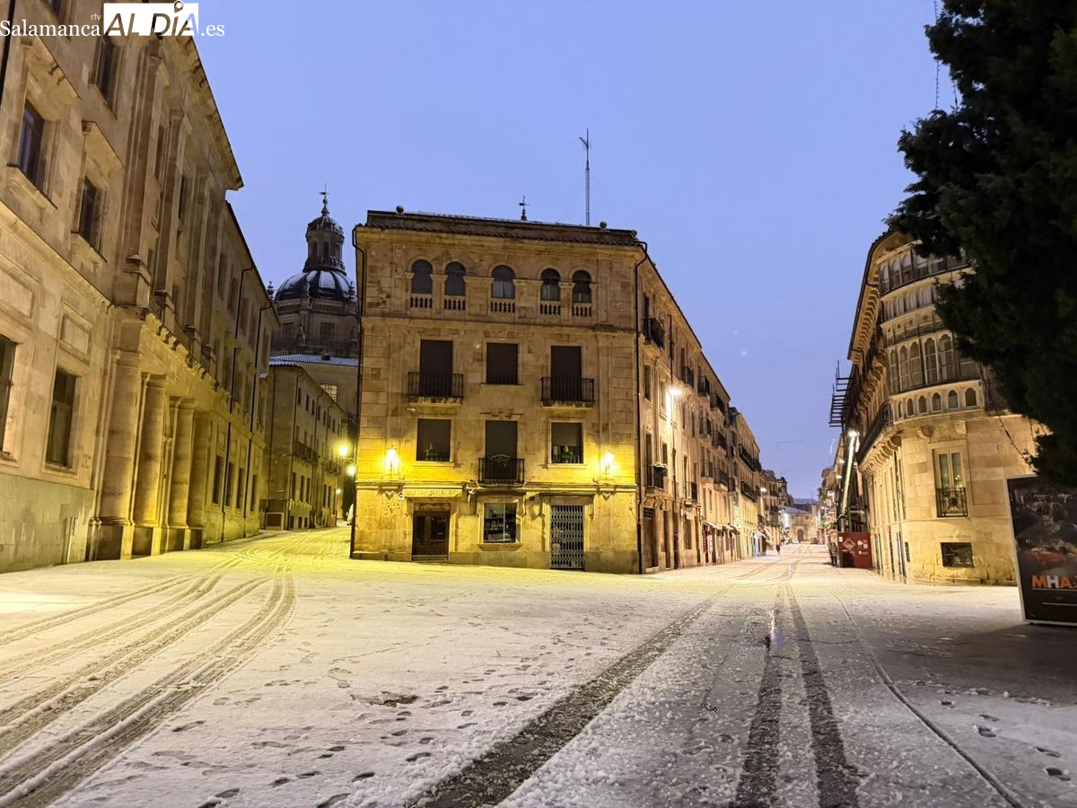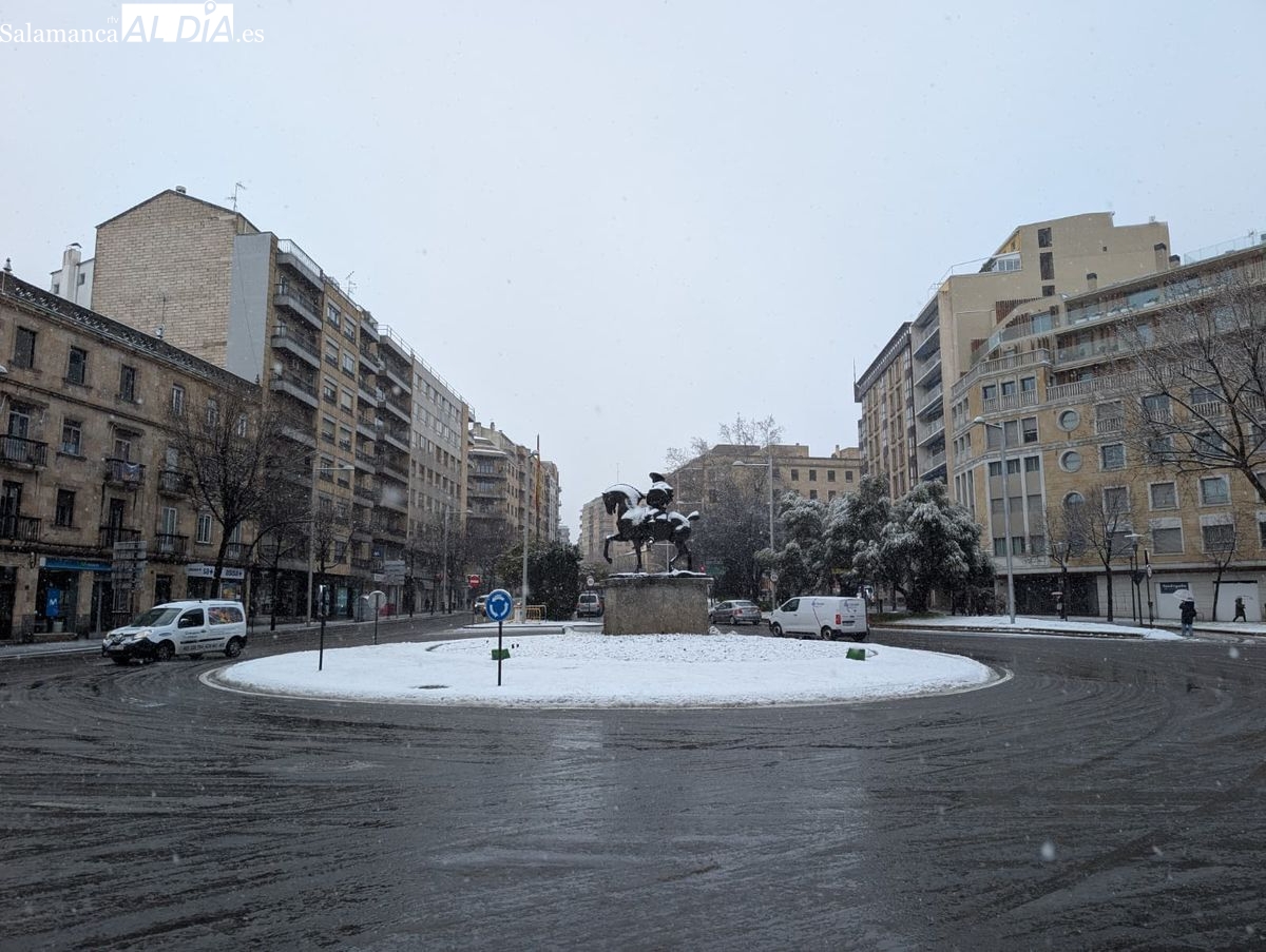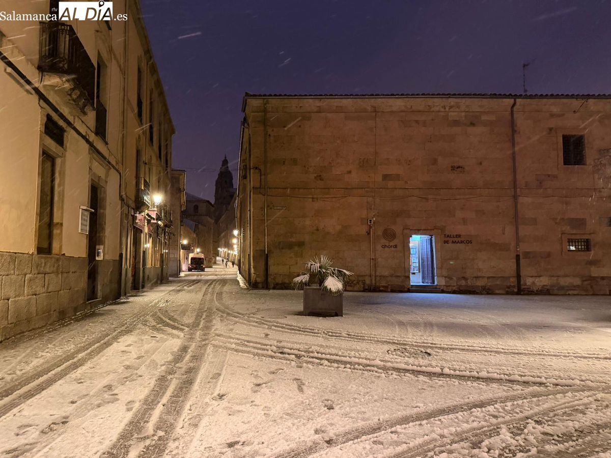 La capital del Tormes ha despertado este miércoles cubierta por un inesperado manto blanco que ha complicado la movilidad a primera hora de la mañana. Mientras los servicios de limpieza trabajan en las calles, la Agencia Estatal de Meteorología (Aemet) mantiene activos avisos de nivel naranja por fuertes vientos en la provincia, que podrían alcanzar rachas muy severas en zonas de montaña y meseta.