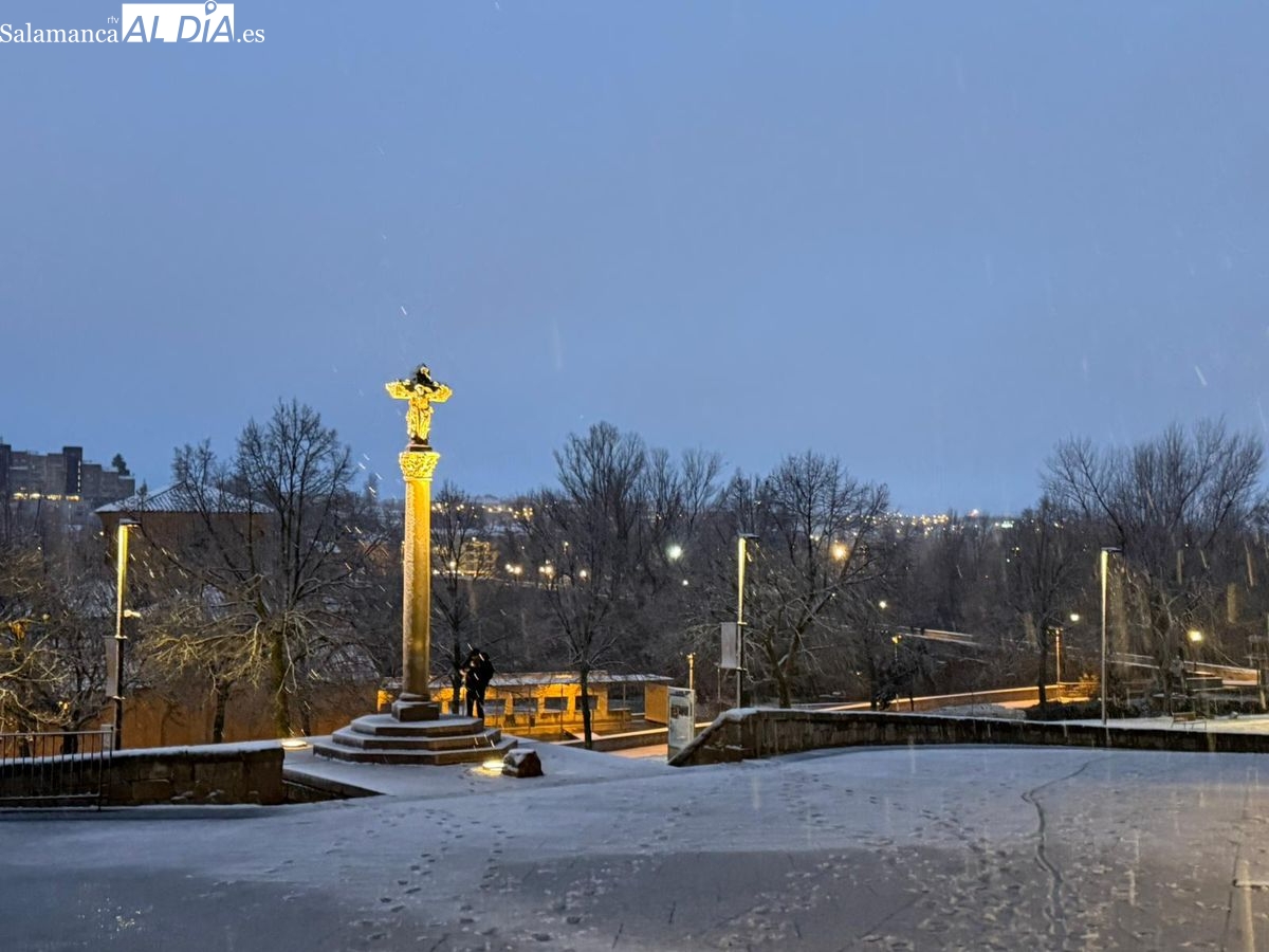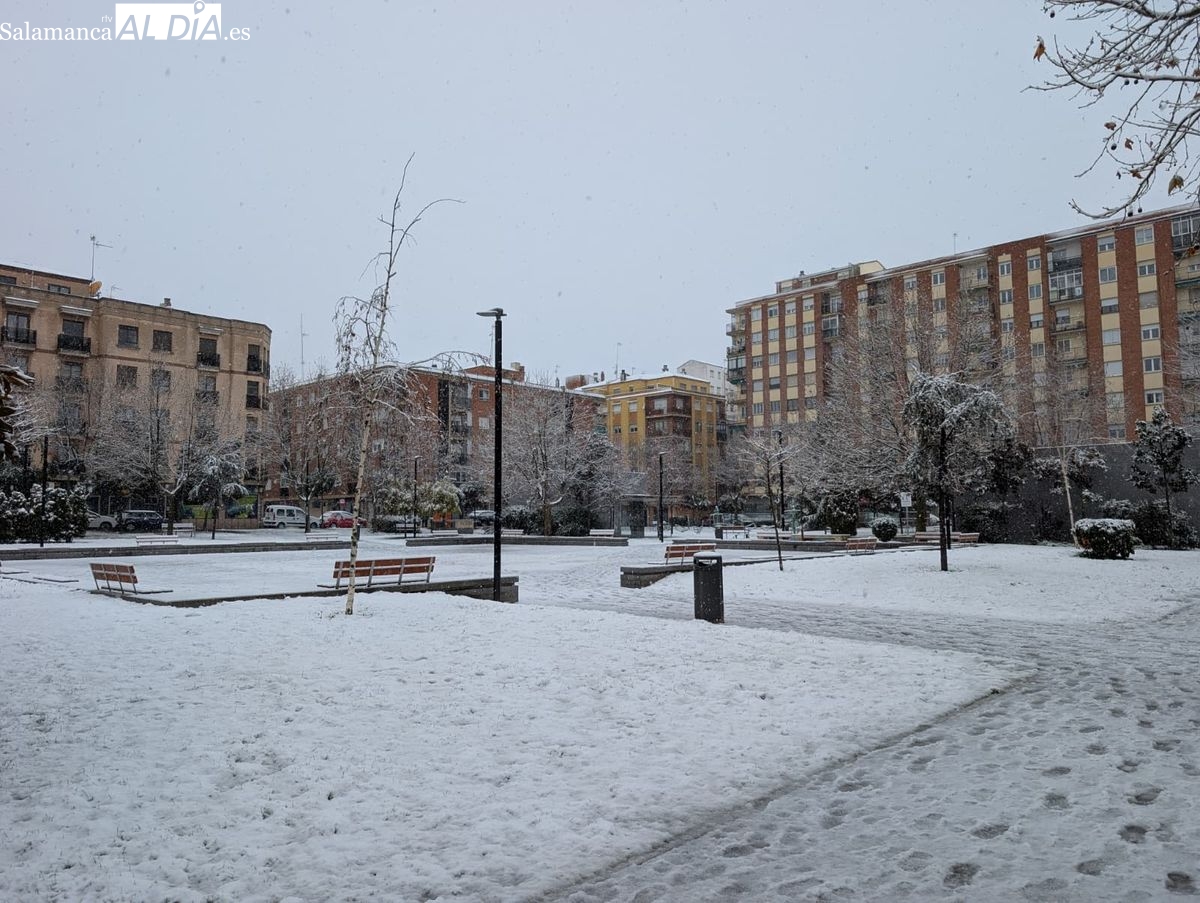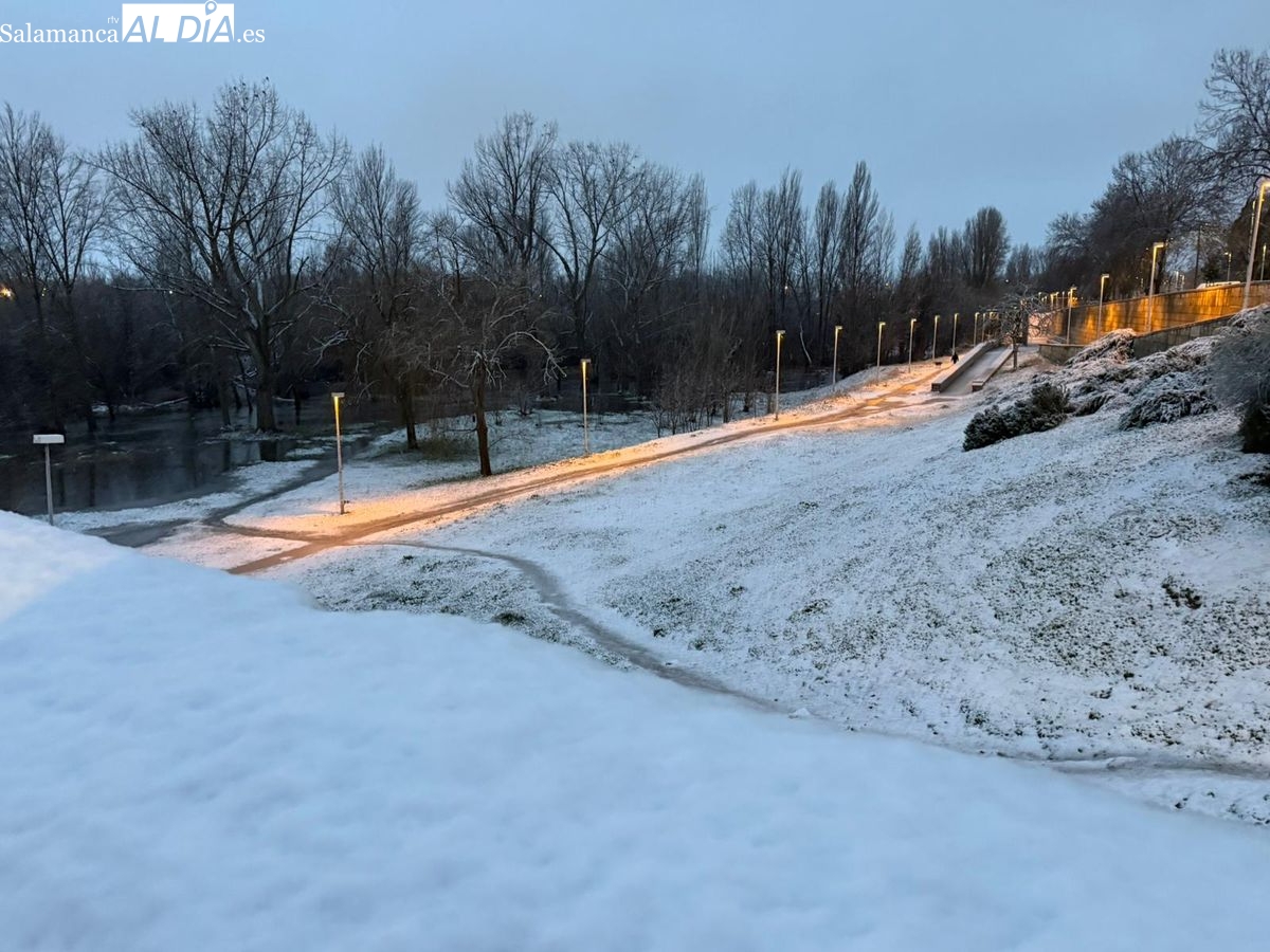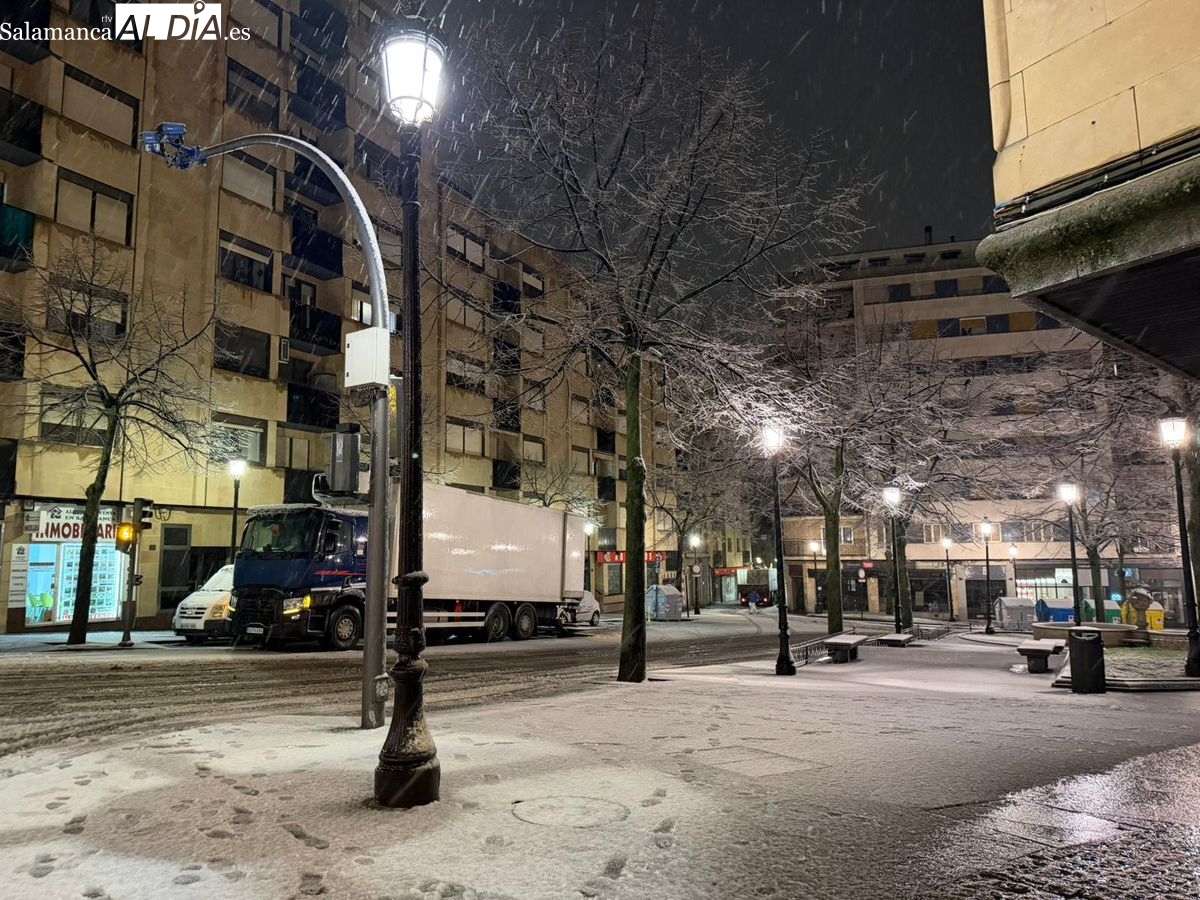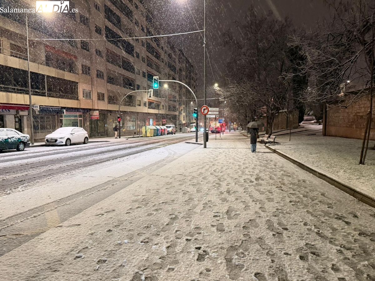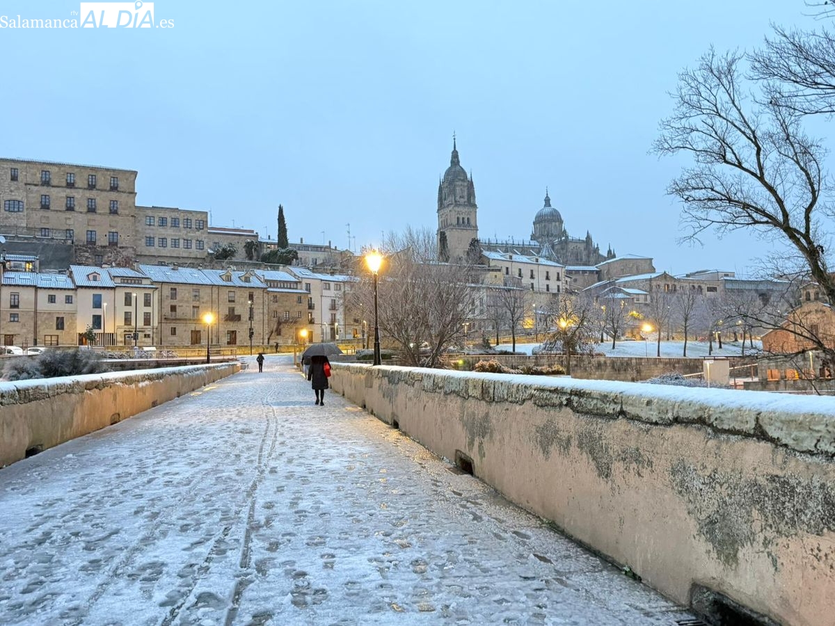 La capital del Tormes ha despertado este miércoles cubierta por un inesperado manto blanco que ha complicado la movilidad a primera hora de la mañana. Mientras los servicios de limpieza trabajan en las calles, la Agencia Estatal de Meteorología (Aemet) mantiene activos avisos de nivel naranja por fuertes vientos en la provincia, que podrían alcanzar rachas muy severas en zonas de montaña y meseta.