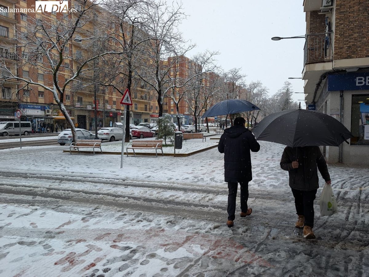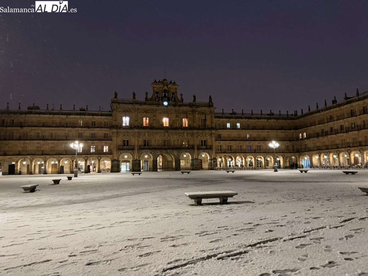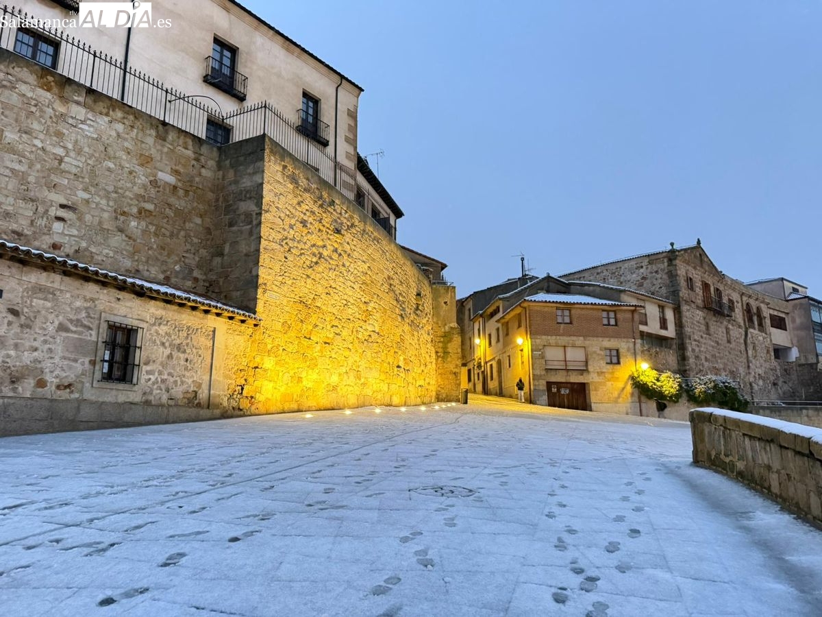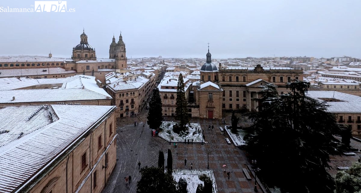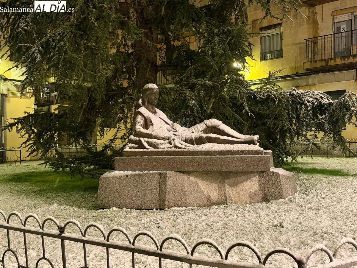 La capital del Tormes ha despertado este miércoles cubierta por un inesperado manto blanco que ha complicado la movilidad a primera hora de la mañana. Mientras los servicios de limpieza trabajan en las calles, la Agencia Estatal de Meteorología (Aemet) mantiene activos avisos de nivel naranja por fuertes vientos en la provincia, que podrían alcanzar rachas muy severas en zonas de montaña y meseta.