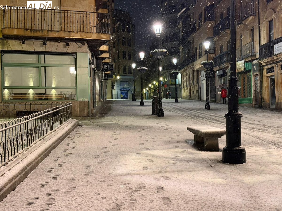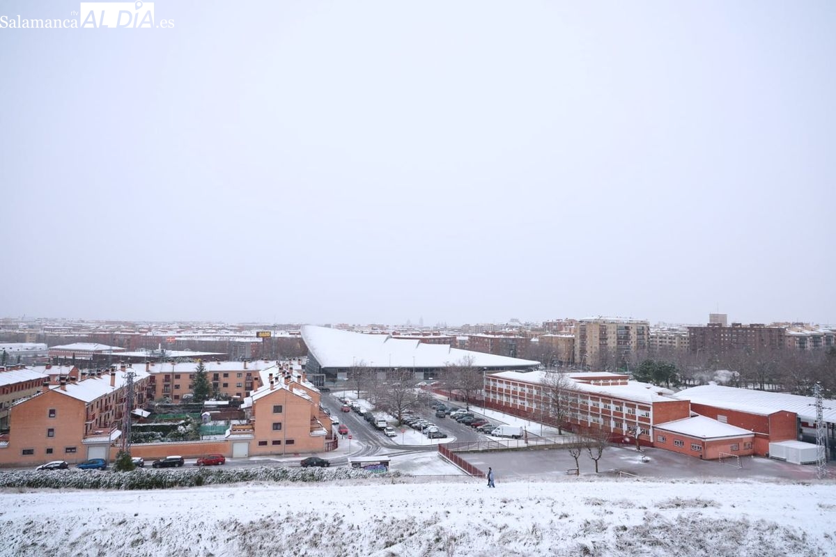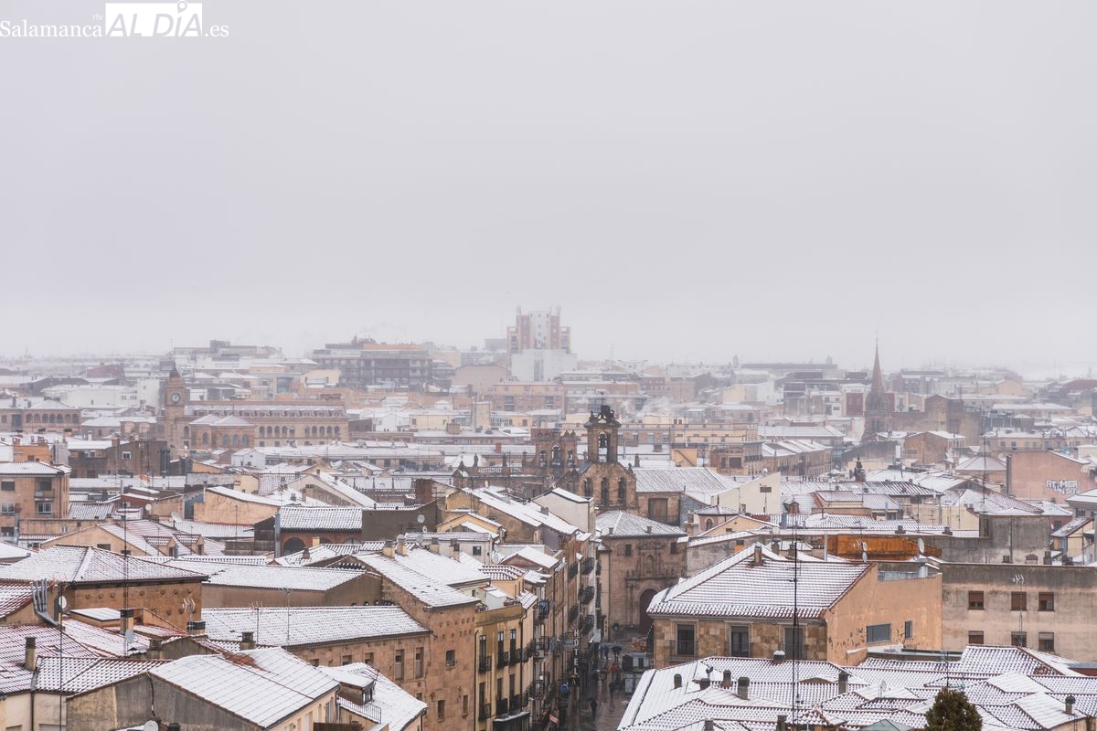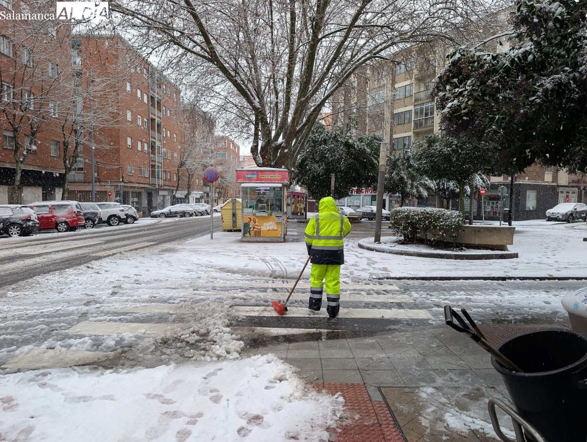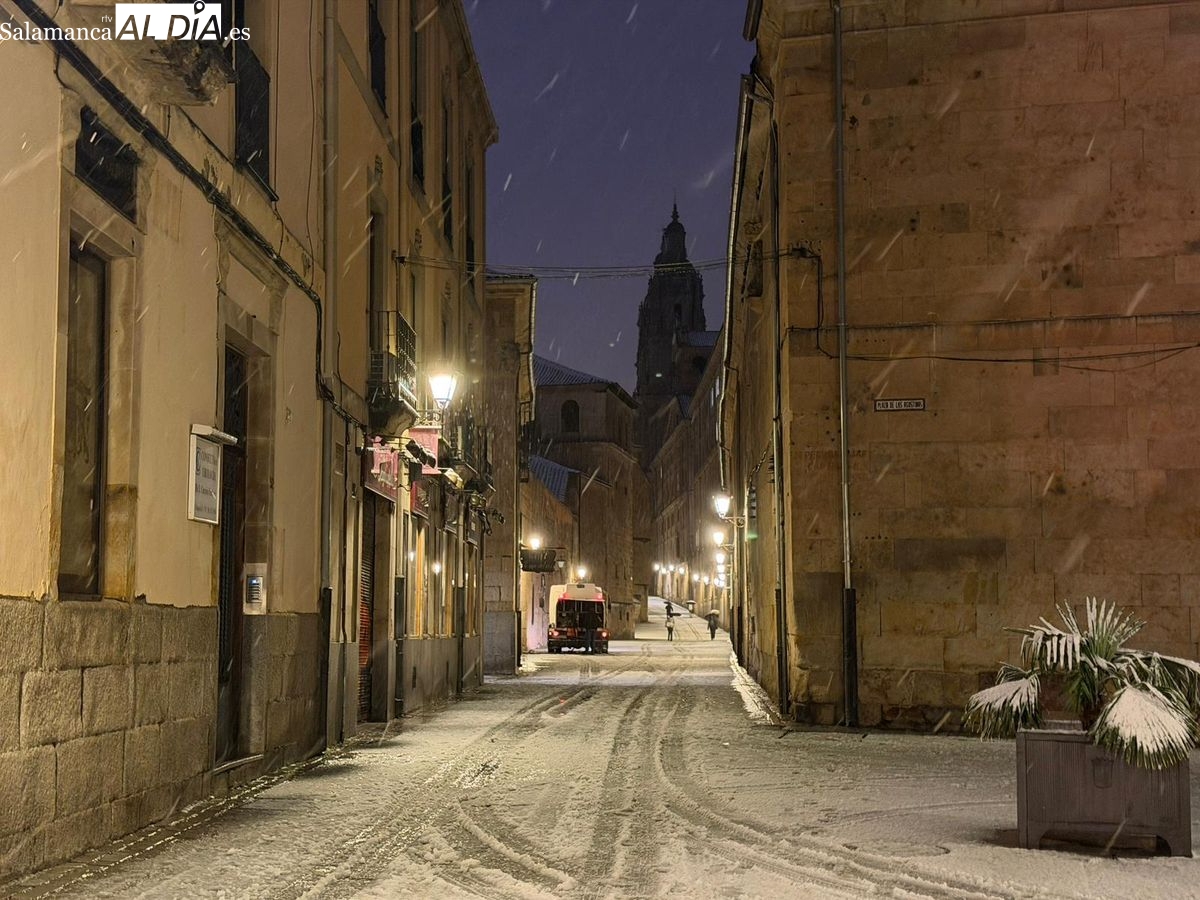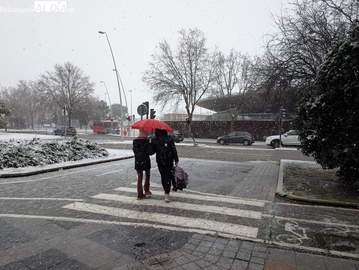 La capital del Tormes ha despertado este miércoles cubierta por un inesperado manto blanco que ha complicado la movilidad a primera hora de la mañana. Mientras los servicios de limpieza trabajan en las calles, la Agencia Estatal de Meteorología (Aemet) mantiene activos avisos de nivel naranja por fuertes vientos en la provincia, que podrían alcanzar rachas muy severas en zonas de montaña y meseta.