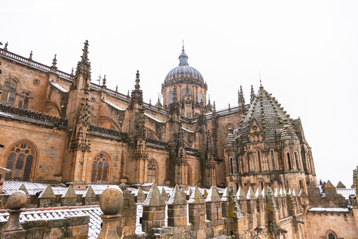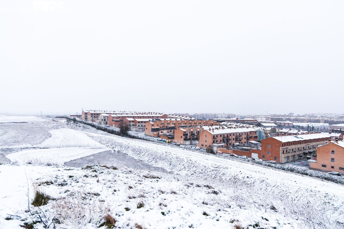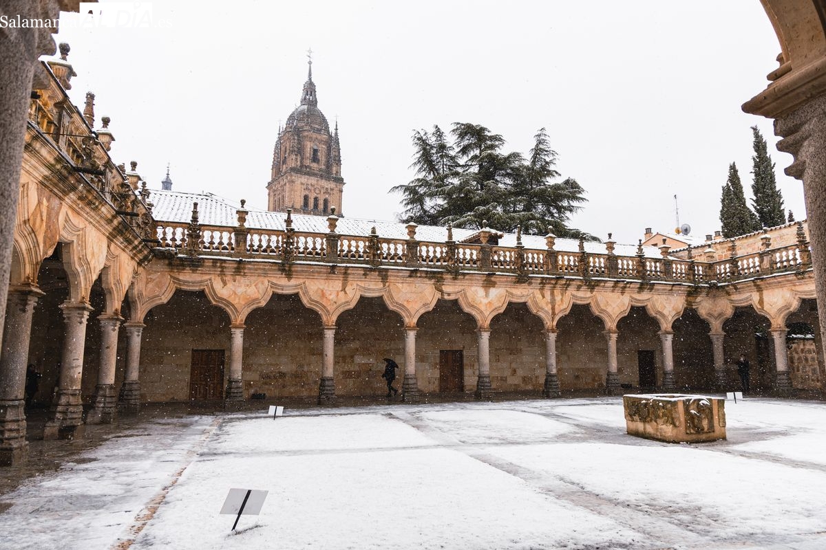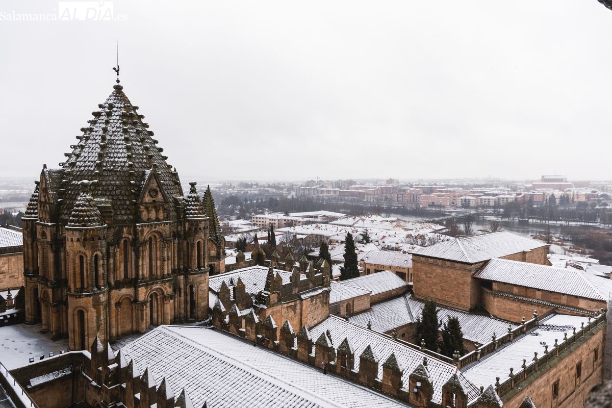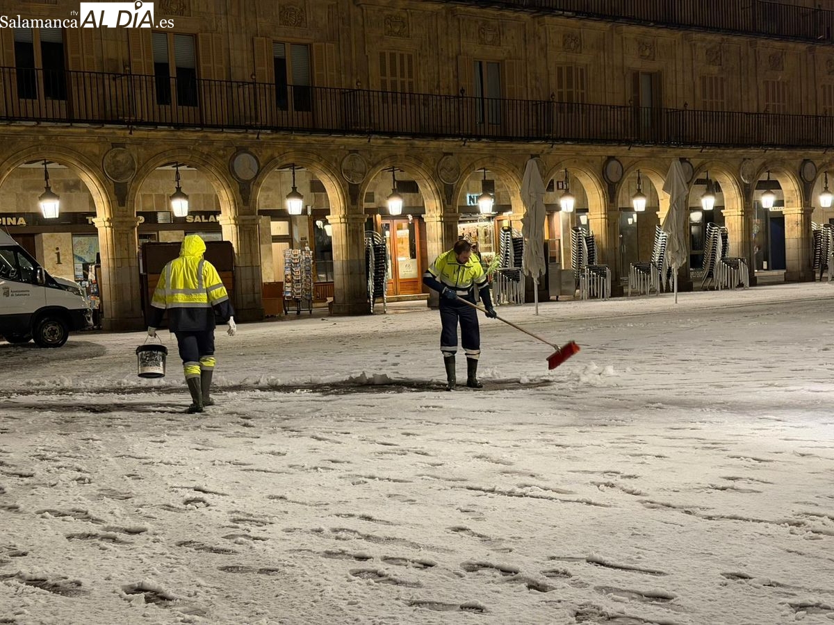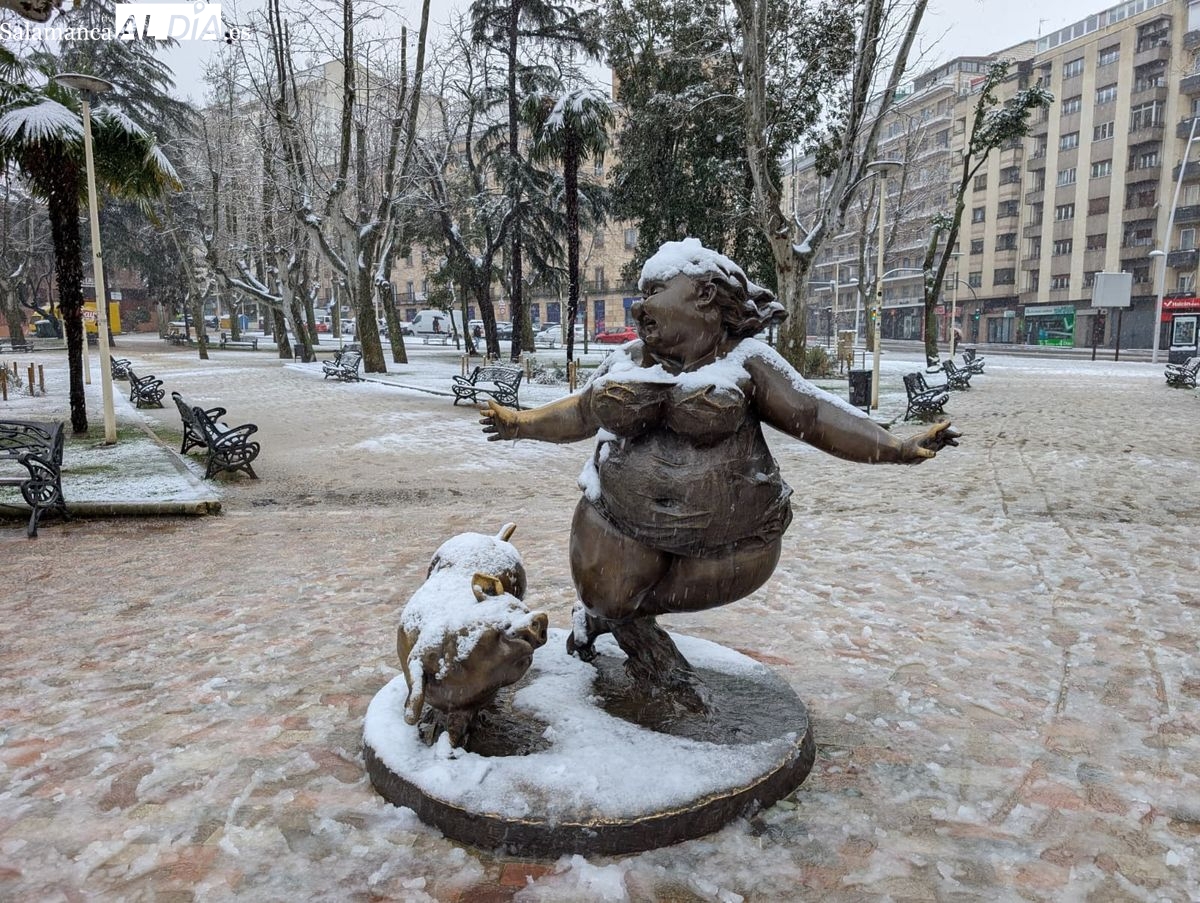 La capital del Tormes ha despertado este miércoles cubierta por un inesperado manto blanco que ha complicado la movilidad a primera hora de la mañana. Mientras los servicios de limpieza trabajan en las calles, la Agencia Estatal de Meteorología (Aemet) mantiene activos avisos de nivel naranja por fuertes vientos en la provincia, que podrían alcanzar rachas muy severas en zonas de montaña y meseta.