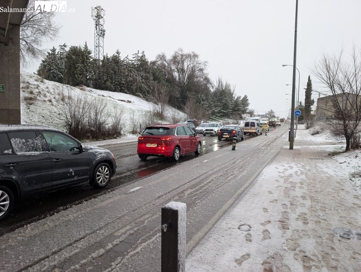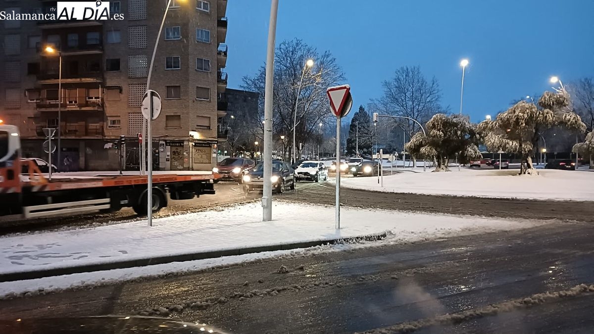 Las complicaciones meteorológicas han afectado también al transporte público. En el caso de la capital, están funcionando la mayoría de las líneas del bus urbano con alguna incidencia puntual en cuanto a tiempos de llegada, como es lógico, por el tráfico lento. Están afectadas las líneas 2 en la Carretera de Ledesma, así como la 13 y 14 en Huerta Otea. Además, se ha cerrado al tráfico avenida Reina Berenguela en sentido subida.