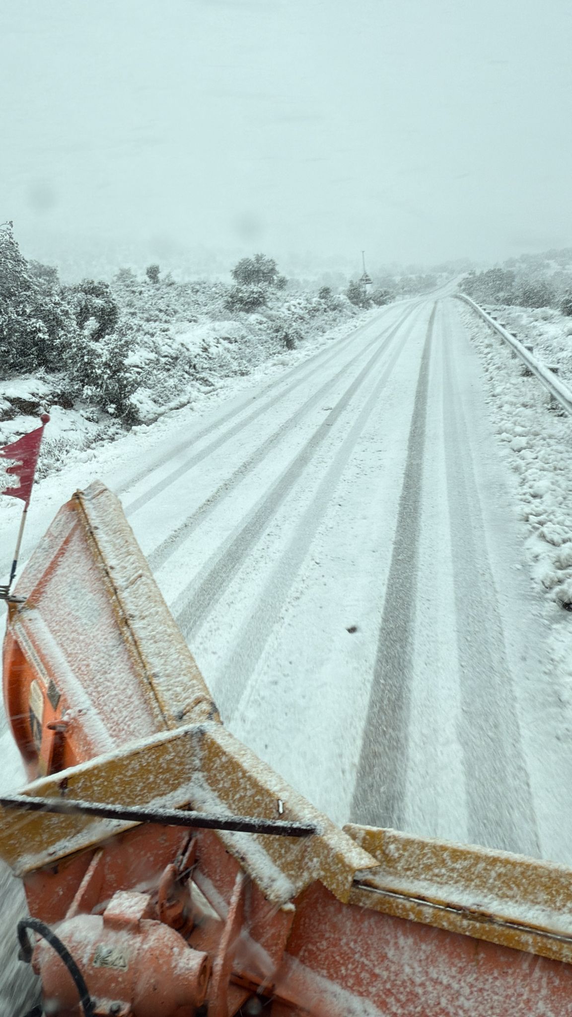El operativo desplegado consta de seis camiones quitanieves equipados con cuña y repartidores de fundentes, apoyados por tres equipos de retén que incluyen furgonetas, personal operativo y vehículos de capataces-vigilantes encargados de monitorizar el estado de las vías de forma continua.