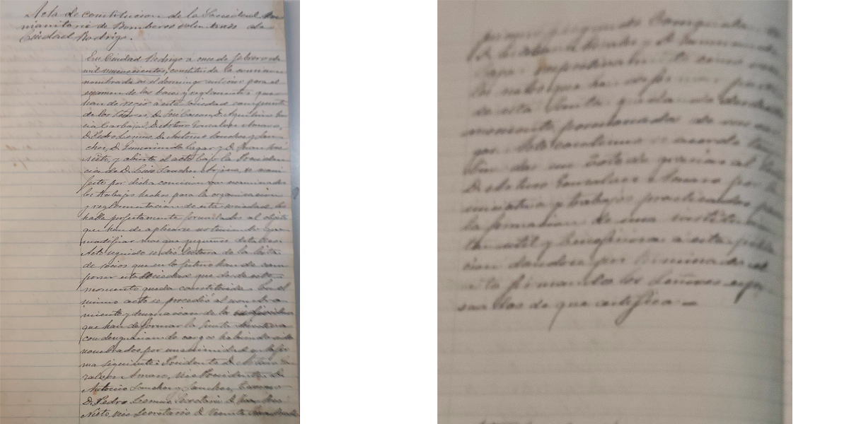 La localización del libro fue posible gracias a la colaboración de Narciso Caridad Yebra, Jefe de la Policía Local de Ciudad Rodrigo. Tras el fallecimiento del último hijo de Fernando Diez Casanueva, quien fuera el secretario de la Junta Directiva en 1900, el presidente de los bomberos solicitó a Caridad Yebra, familiar del difunto, que buscase el documento. Este cumplió con el encargo el pasado 22 de enero, entregando no solo el libro de actas, sino también recortes de prensa y otros documentos de la asociación.