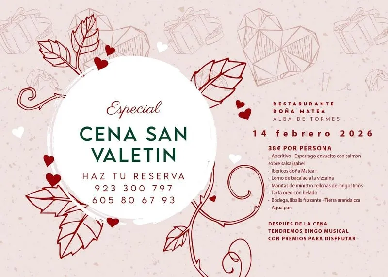 El Restaurante Doña Matea, ubicado en Alba de Tormes, ha presentado su propuesta gastronómica para celebrar la noche de San Valentín. La cita tendrá lugar el próximo sábado, 14 de febrero de 2026, y combinará una cena especial con una actividad lúdica para todos los asistentes.