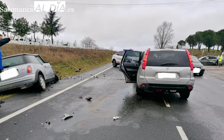 En la colisión se han visto implicados tres vehículos y los afectados son tres varones de 59, 71 y 81 años, que han sido trasladados al Hospital de Salamanca