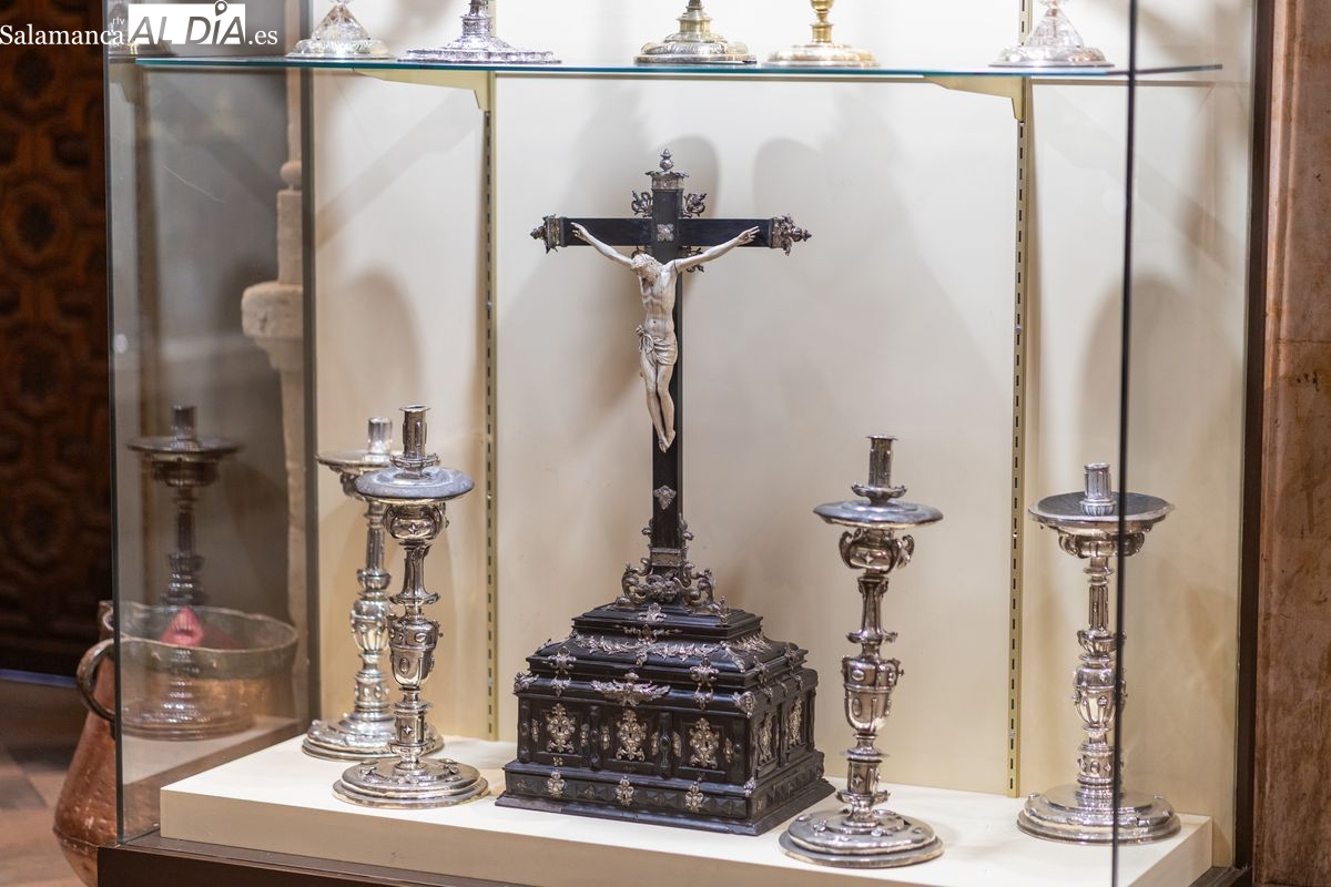 La riqueza de esta estancia se completa con la presencia de impresionantes cristos de marfil de gran factura y unos espejos de gran tamaño procedentes de Venecia que datan del siglo XVIII. En este mismo espacio, el visitante puede contemplar un cofre que custodia diversas reliquias de santos, así como la histórica cajonera que utiliza el actual obispo de la Diócesis, Mons. José Luis Retana, elementos que dotan a la sacristía de un profundo valor artístico y funcional.