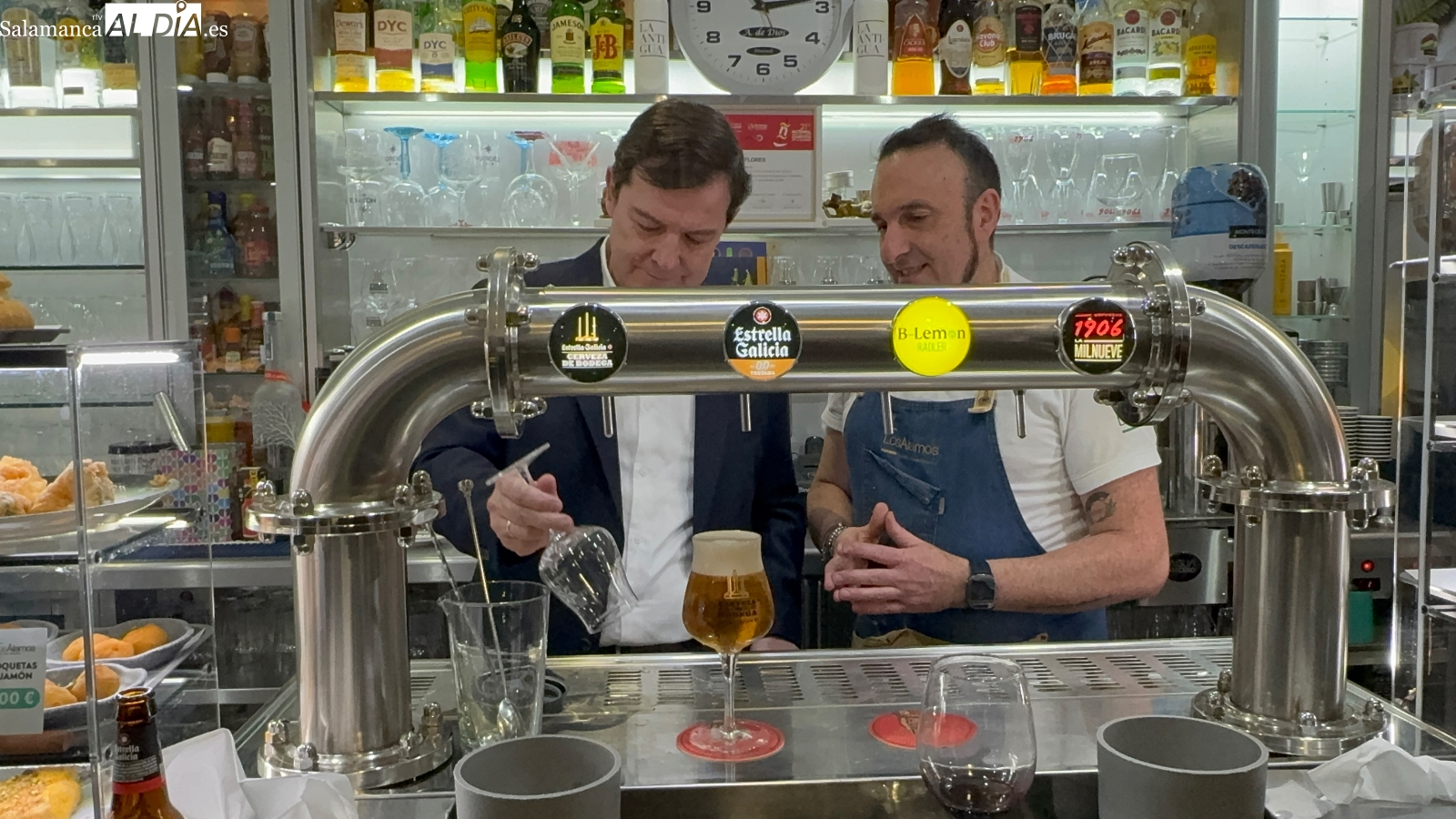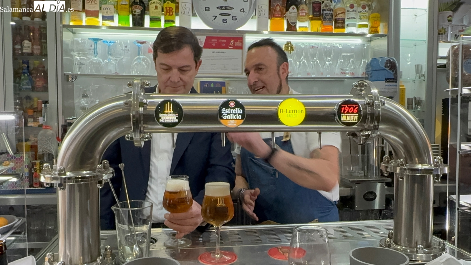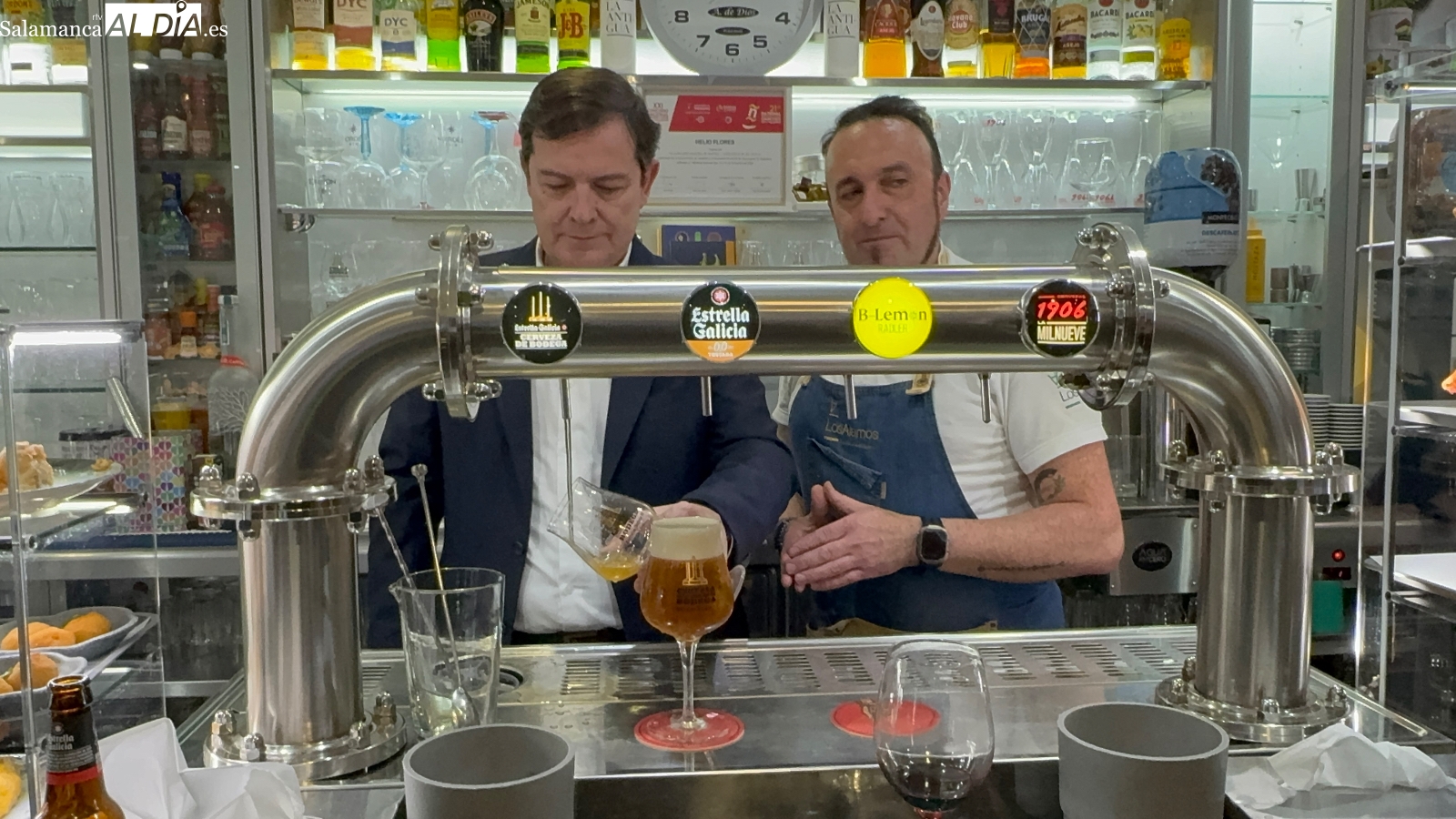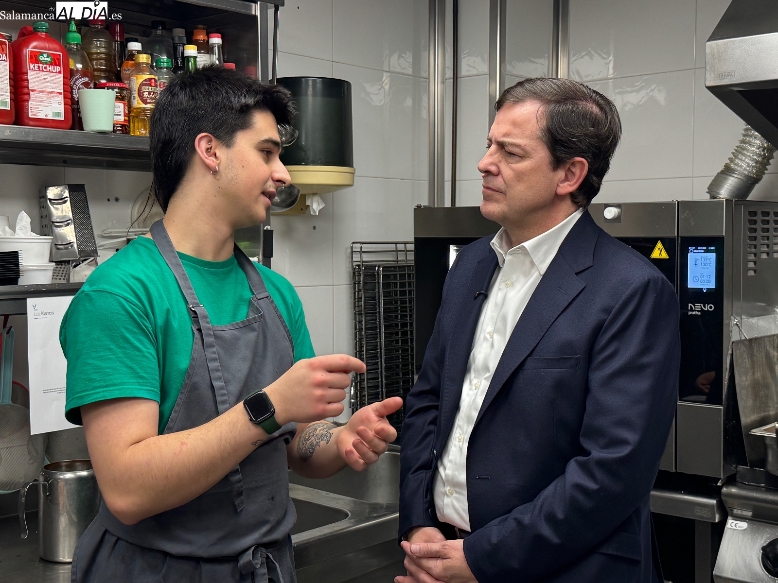 Un breve encuentro, en el que Mañueco, acompañado por Eva López, también ha compartido conversación con Helio Flores, Álex Marcos, además de hablar con varios vecinos y empresarios, quienes no dudaron en acercarse a él para exponerle inquietudes y planteamientos. A todo esto se sumaba un desenfadado momento, cuando Teo Marcos enseñaba al presidente a "tirar" una caña, algo que suscitaba curiosidad y sonrisas a partes iguales.
