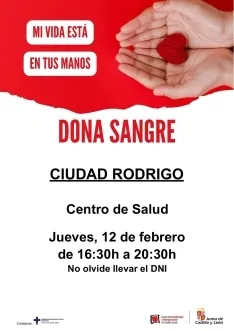 El Centro de Salud de Ciudad Rodrigo se prepara para acoger una nueva jornada de donación de sangre. La colecta, organizada por el Centro de Hemoterapia y Hemodonación de Castilla y León, está programada para el próximo jueves, 12 de febrero, en horario de tarde.