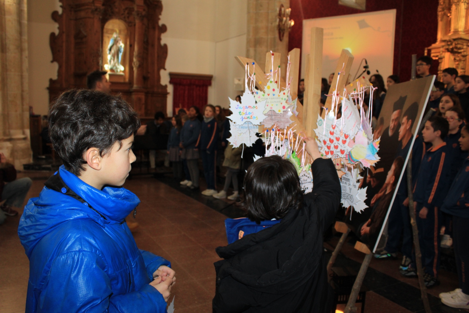 La conmemoración dio comienzo con una actuación del coro del colegio, cuya interpretación aportó el tono emotivo necesario para una celebración caracterizada por la alta participación de los estudiantes. El momento central del evento tuvo lugar cuando, en un gesto cargado de simbolismo, los delegados de cada clase procedieron a colgar una hoja en un árbol común. Cada una de estas hojas portaba el compromiso de paz de su grupo, conformando así una representación visual del compromiso colectivo de toda la comunidad educativa.