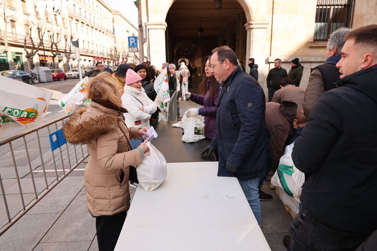COAG, UPA, ASAJA y UCCL organizaban otra protesta ante el posible acuerdo con Mercasur que se ha desarrollado en la Plaza de la Constitución con patatas gratis a los ciudadanos.