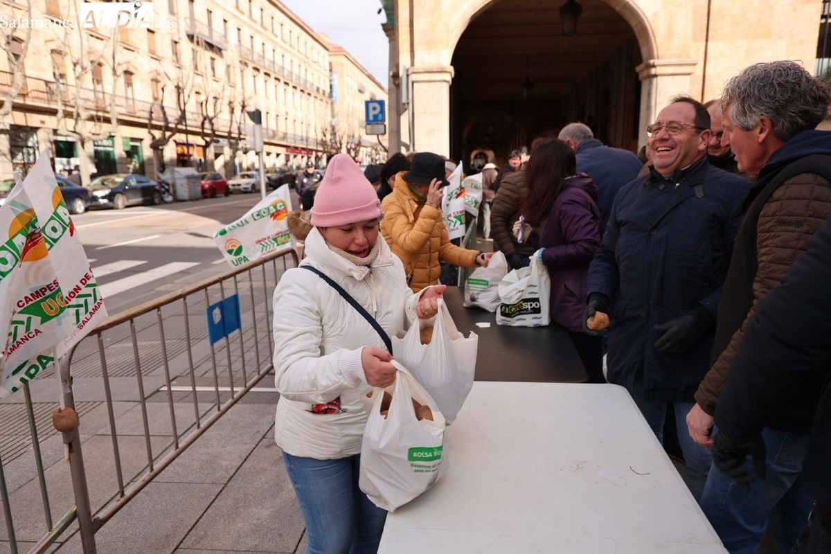 FOTOS y VÍDEO | Reparto de patatas gratis en el centro de Salamanca para reivindicar la defensa de los productos locales @AsajaSalamanca @CoagCyl @upacyl @UCCLCyL https://t.co/Vpiz78s3JB pic.twitter.com/Mx0RLDiseF