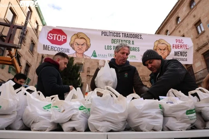 La Plaza de la Constitución de Salamanca acogía este viernes otra jornada de reivindicaciones del sector primario charro. Las organizaciones profesionales agrarias volvían a expresar su malestear por acuerdo de la Unión Europea con Mercosur, que supone el hundimiento de los productores españoles, que tienen que cumplir normativas mucho más exigentes que los americarnos.