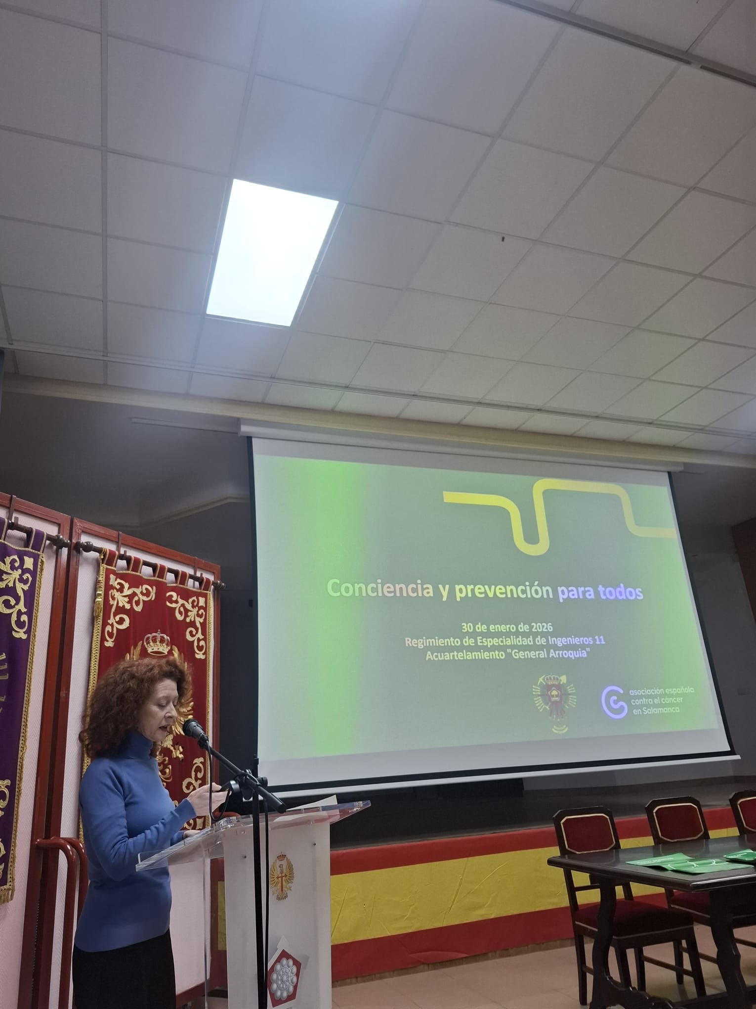 La Asociación Española Contra el Cáncer (AECC) en Salamanca ha dado comienzo esta mañana a un ambicioso programa formativo dirigido a los profesionales del Regimiento de Especialidades de Ingenieros n. 11 (REI 11). La iniciativa, que ha tenido lugar en el acuartelamiento General Arroquia de la capital salmantina, busca dotar a los militares de herramientas clave para la prevención, detección y gestión de procesos oncológicos.