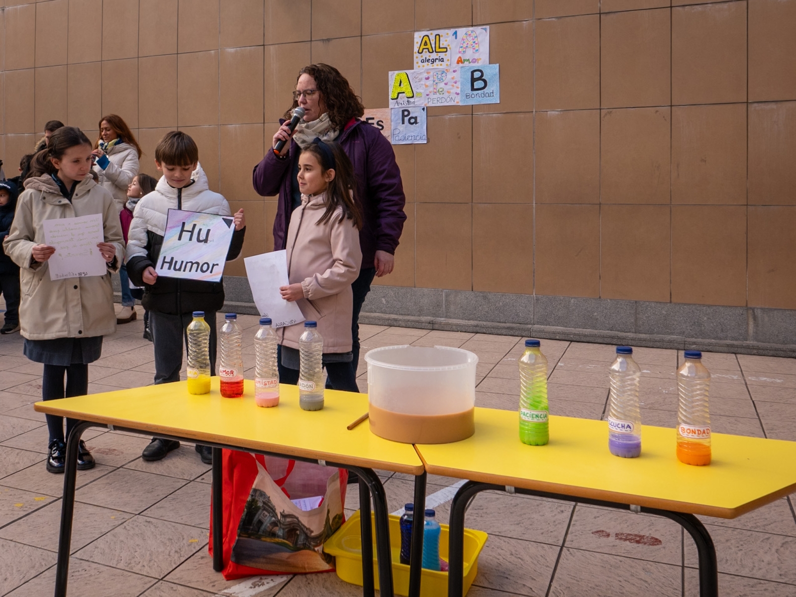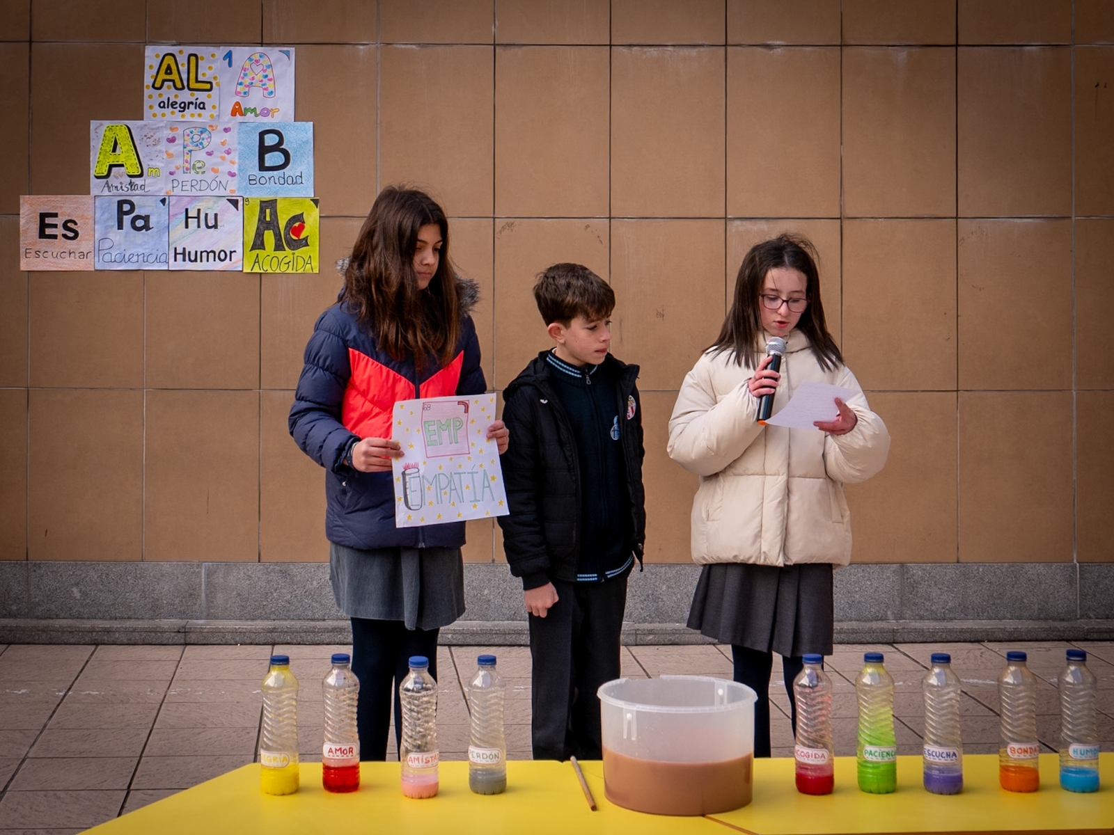 La actividad central para los alumnos de Educación Infantil y Primaria ha consistido en la creación de una 'Tabla Periódica Humana'. Inspirados por la música de Unai Quirós, los escolares han trabajado previamente en la identificación de los "elementos" necesarios para la armonía social. Durante el acto conjunto en el patio, cada curso ha representado un valor específico: desde la Alegría mostrada por los pequeños de 1 y 2 años, pasando por el Amor, la Amistad y el Perdón de Infantil, hasta conceptos como la Bondad, la Escucha, la Paciencia, el Humor, la Acogida y la Empatía trabajados en Primaria. Cada grupo ha aportado su pieza para visualizar cómo la combinación de todos estos factores es necesaria para el funcionamiento de la convivencia diaria.