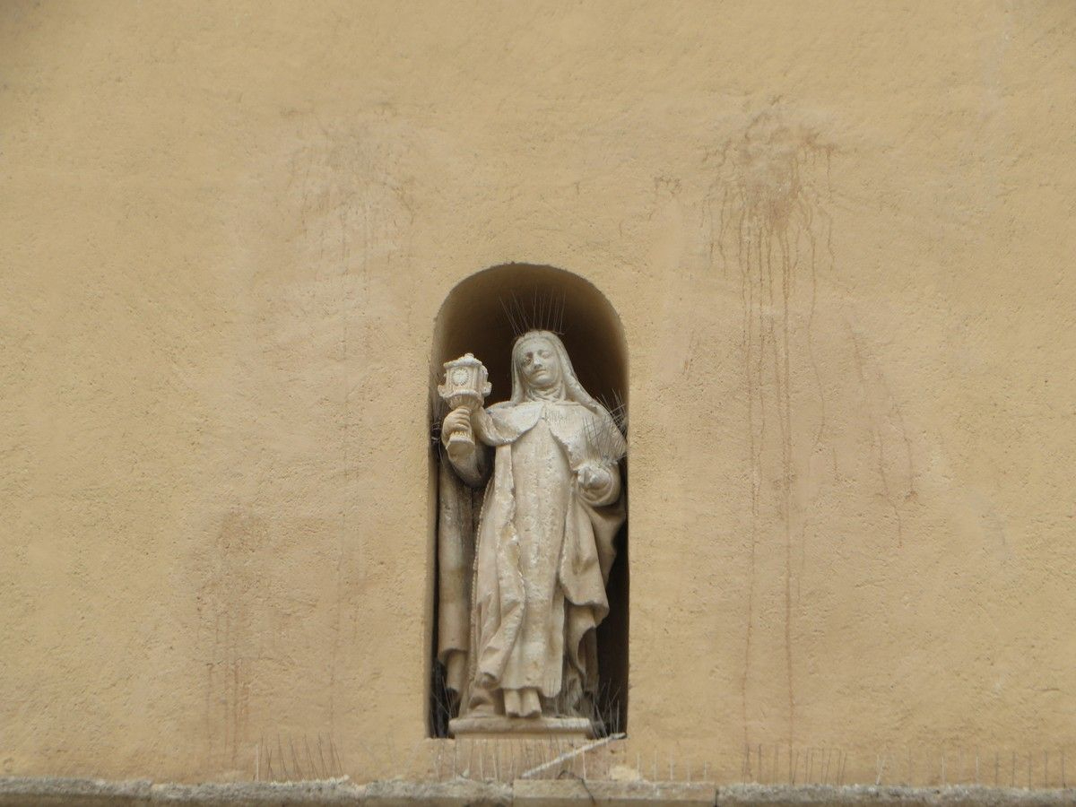 El comunicado también hace referencia a la intervención realizada hace años en la acera de la Calle las Claras, cuyo objetivo era evitar que el agua alcanzase los muros. Sin embargo, la asociación califica los resultados de "insuficientes", destacando que en la cara interior de esos muros se encuentran pinturas murales y la propia iglesia. Además, lamentan la presencia de pintadas vandálicas que se han perpetuado en la puerta de acceso a la iglesia, junto a la imagen de la santa.