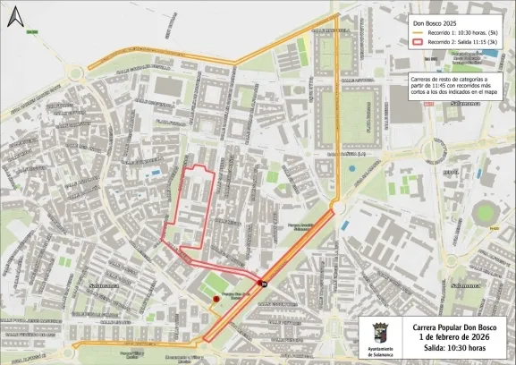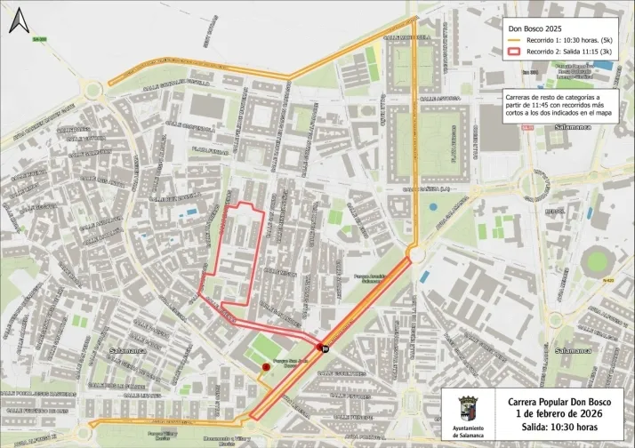 Los conductores que circulen por Salamanca durante la mañana de este domingo, 1 de febrero, deberán tener en cuenta las restricciones de tráfico programadas por la Policía Local. El desarrollo de la tradicional Carrera Popular Don Bosco implicará el cierre temporal de varias vías de la capital para garantizar la seguridad de los corredores y el correcto desarrollo del evento.