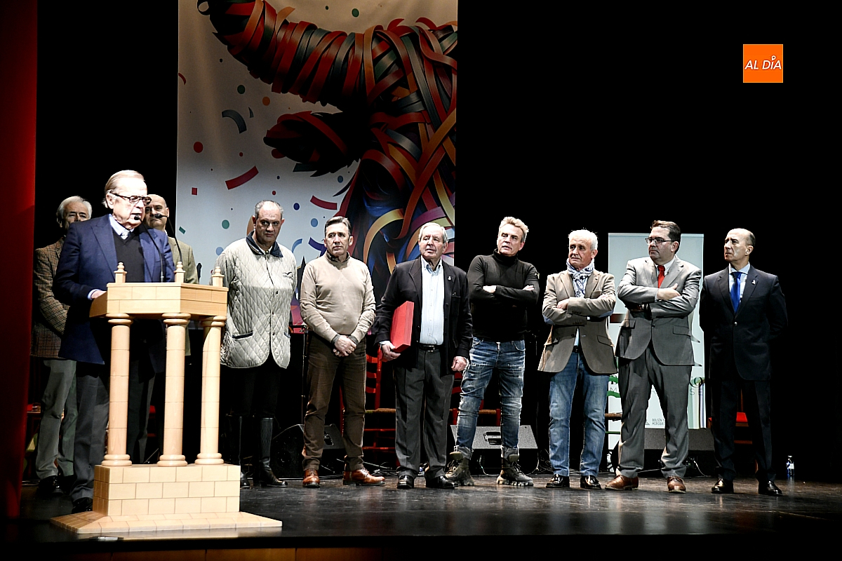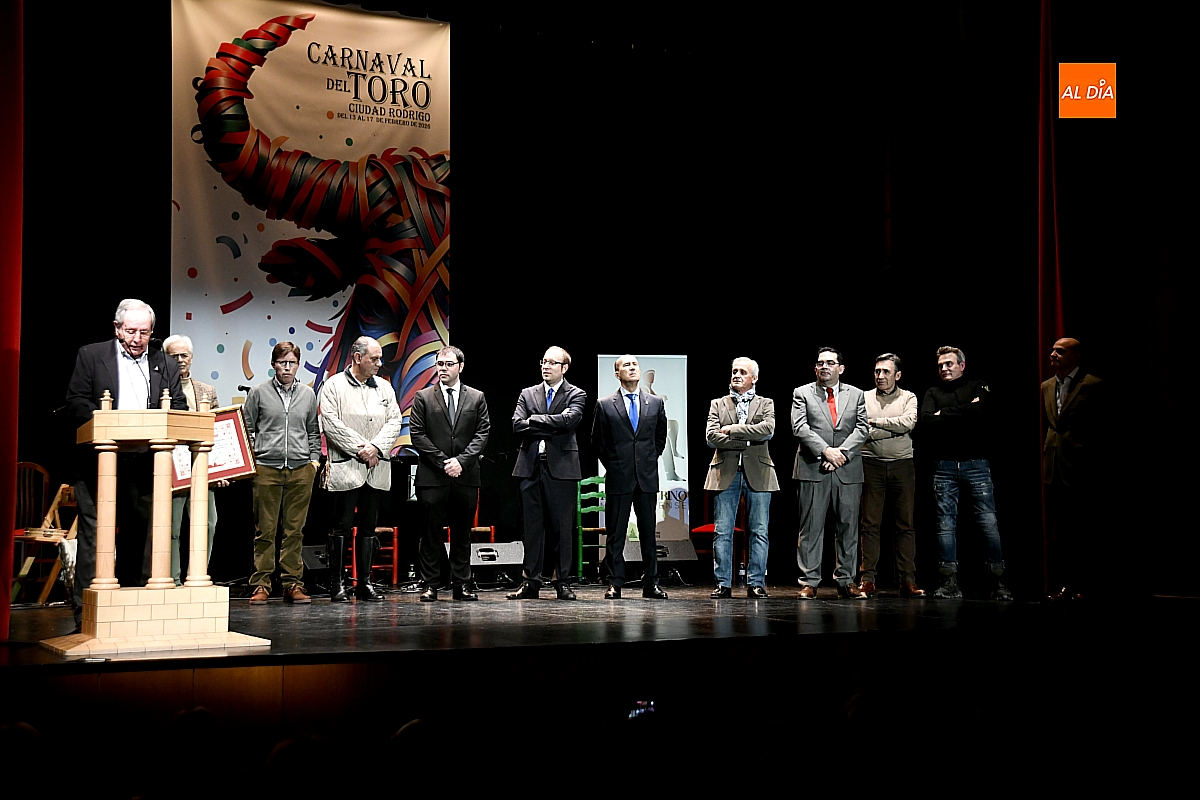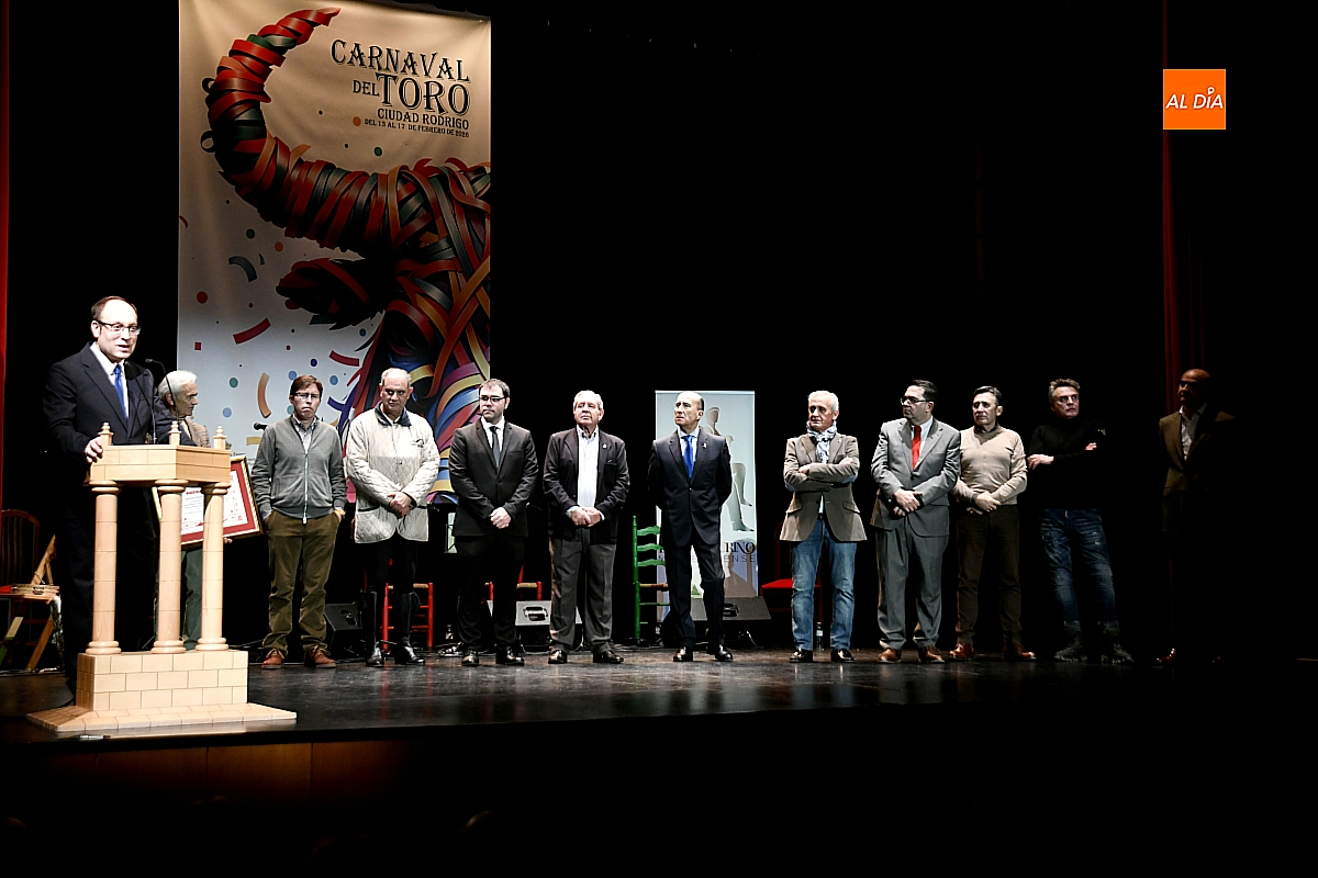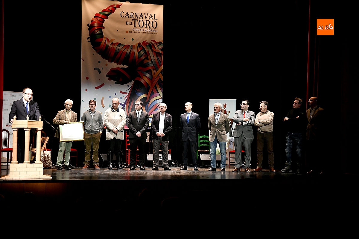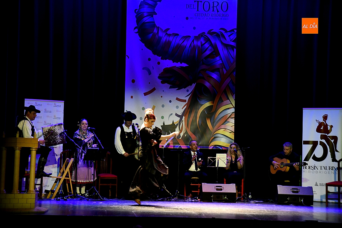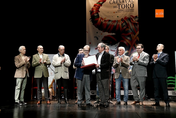 Ya entrada la noche, el protagonismo se trasladó al Teatro Nuevo Fernando Arrabal, que acogió el acto institucional más relevante de la jornada. El Ayuntamiento de Ciudad Rodrigo otorgó al Bolsín Taurino mirobrigense el título de mirobrigense Ilustre, coincidiendo con el 70 aniversario de su fundación y en reconocimiento a una trayectoria que ha llevado el nombre de la ciudad más allá de sus fronteras. El alcalde, Marcos Iglesias, fue el encargado de entregar el galardón a los miembros del Bolsín, que subieron conjuntamente al escenario en un gesto cargado de simbolismo colectivo.