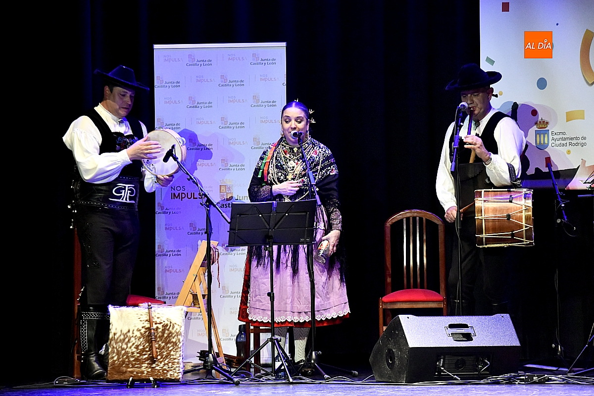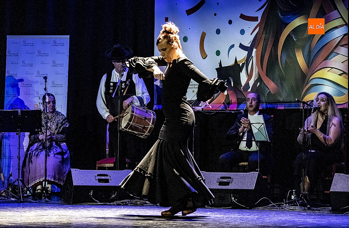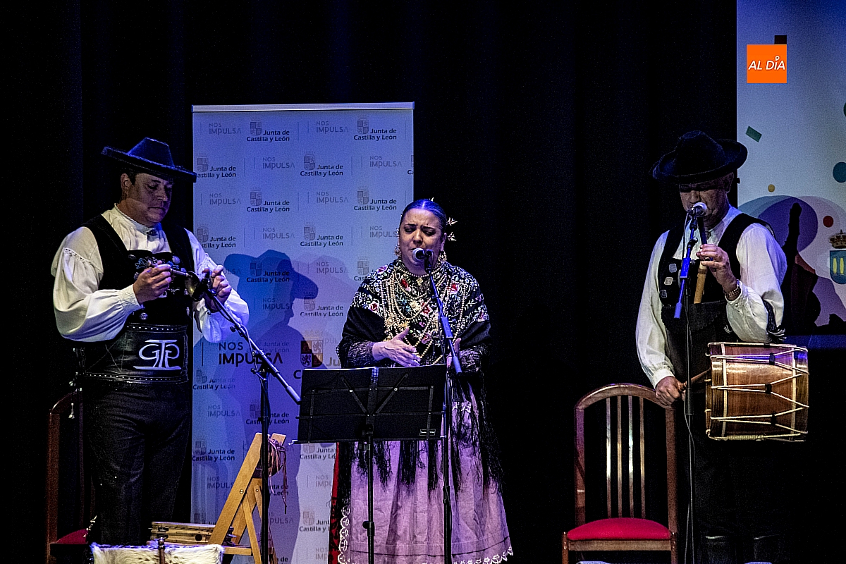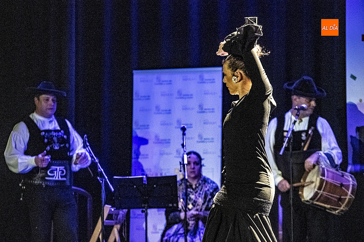 La noche concluyó con una nota musical de gran riqueza estética y emocional gracias a la actuación de Charros y Gitanos, proyecto dirigido por José Ramón Cid Cebrián, que cautivó al público con una puesta en escena sobria y profundamente evocadora. Fruto de una minuciosa investigación etnográfica basada en la tradición oral salmantina, el proyecto propone un diálogo entre la música charra y la flamenca, entre la gaita y el tamboril y la guitarra, entre los ritmos y bailes del campo charro y la expresividad gitana. Una fusión respetuosa y sugerente que puso el broche de oro a una noche en la que tradición, reconocimiento y cultura caminaron de la mano.