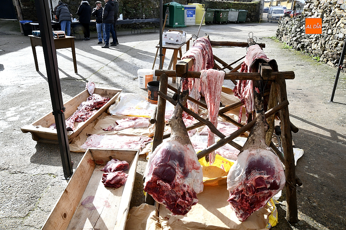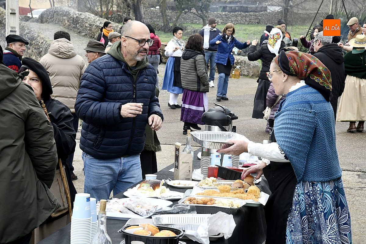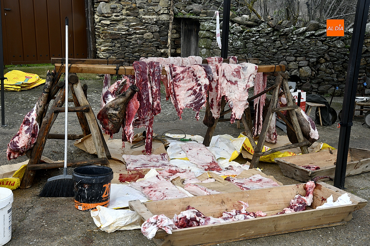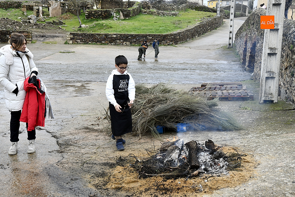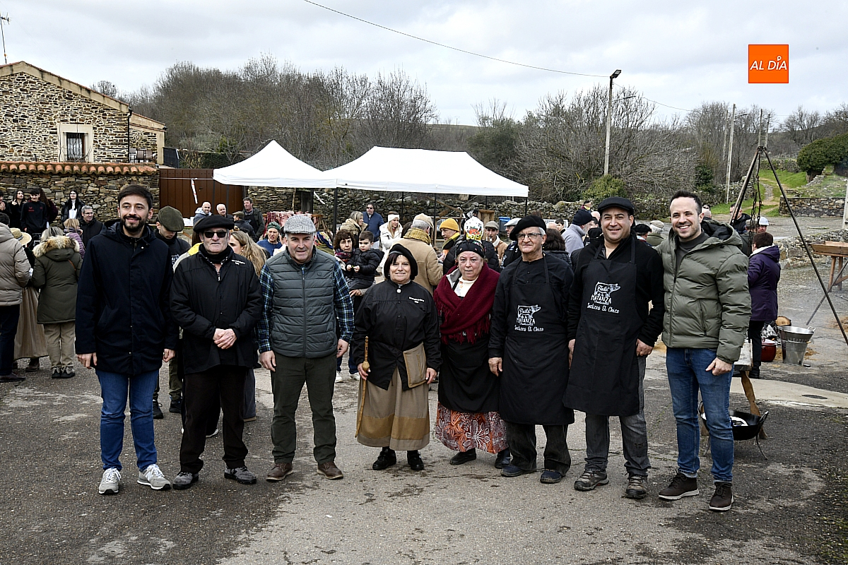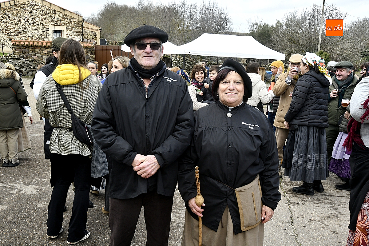 Al son de la gaita y el tamboril de Diego González, de Monsagro, hombres y mujeres ataviados con ropa de faena y trajes tradicionales animaban el ambiente entre bailes improvisados, el calor de la lumbre y el aroma inconfundible de las chichas recién separadas tras un meticuloso despiece del cerdo. La música, constante a lo largo del día, actuó como hilo conductor de una ceremonia que fue, al mismo tiempo, demostración práctica y acto festivo.