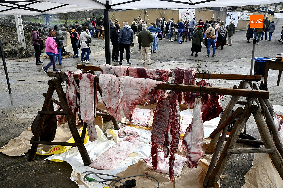 El público pudo seguir de cerca cada una de las fases del proceso. A las diez de la mañana comenzó el chamuscado y raspado del cerdo, paso previo al despiece, que despertó especial interés entre los asistentes. Más tarde llegaron el picado y el adobo de las carnes, una de las labores más características y simbólicas de la matanza tradicional, en la que se concentra buena parte del saber transmitido de generación en generación.