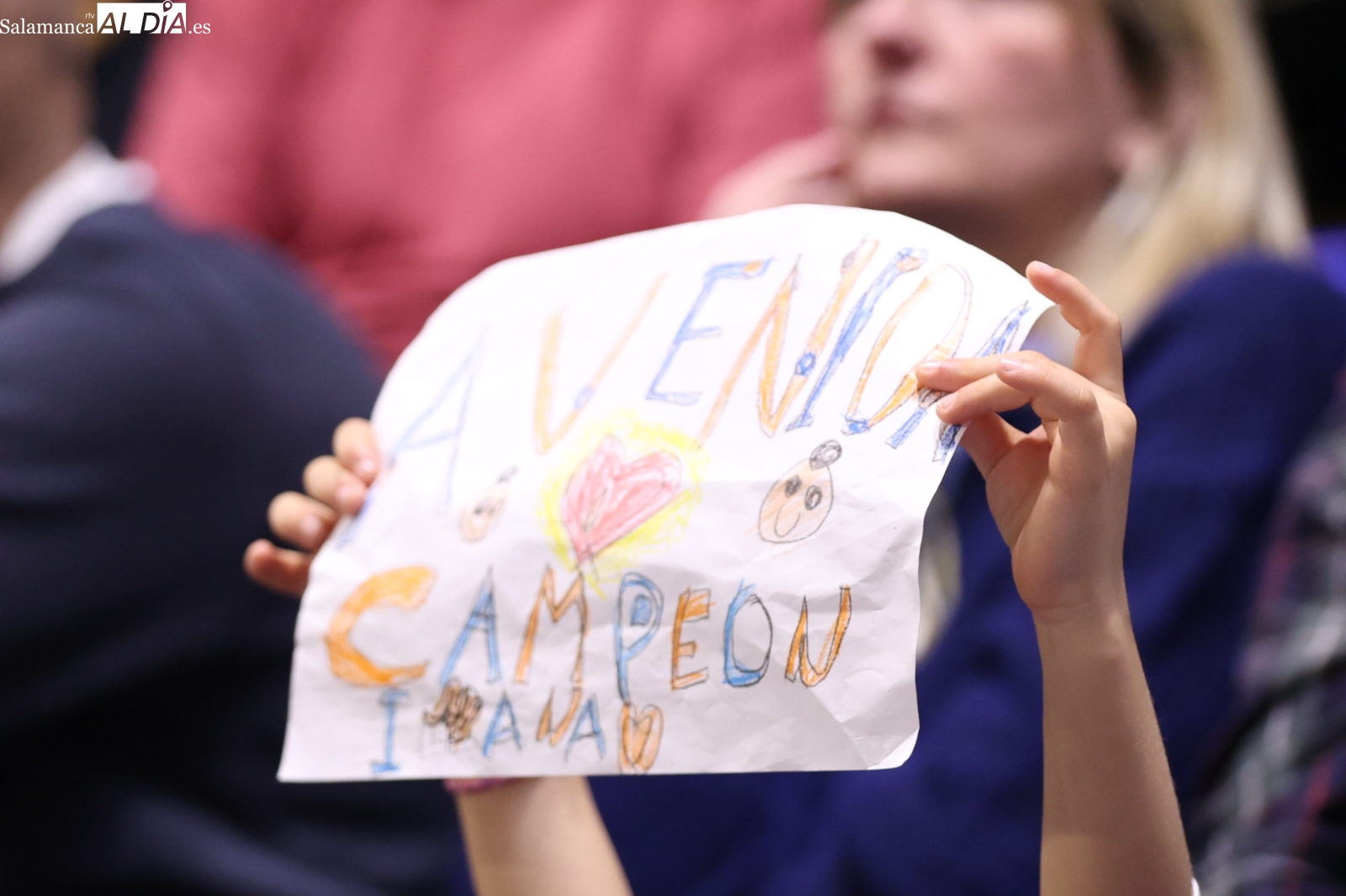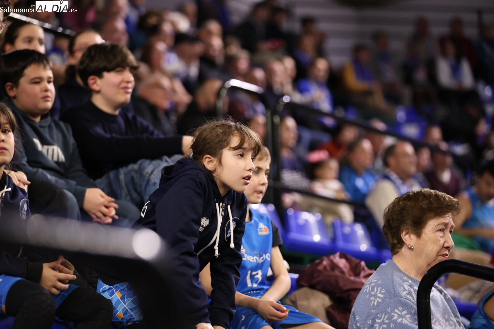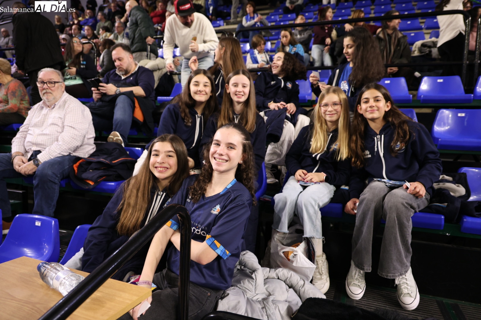 La afición del Perfumerías Avenida no se ha perdido el ver por primera vez a Magarity de corto y con el '2' a la espalda a la espera de que acabe debutando en la pista.