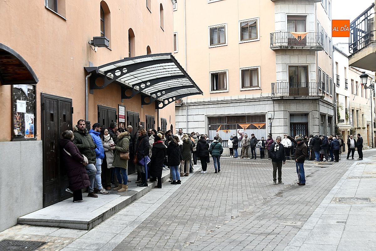 La expectación por el Carnaval del Toro se ha hecho patente desde primera hora de esta mañana en Ciudad Rodrigo. A pesar de que la apertura de la taquilla estaba programada y anunciada para las 11:00 horas, los vecinos más madrugadores han comenzado a formar cola desde las 07:00 horas para asegurarse el acceso al tradicional baile de disfraces de adultos.
