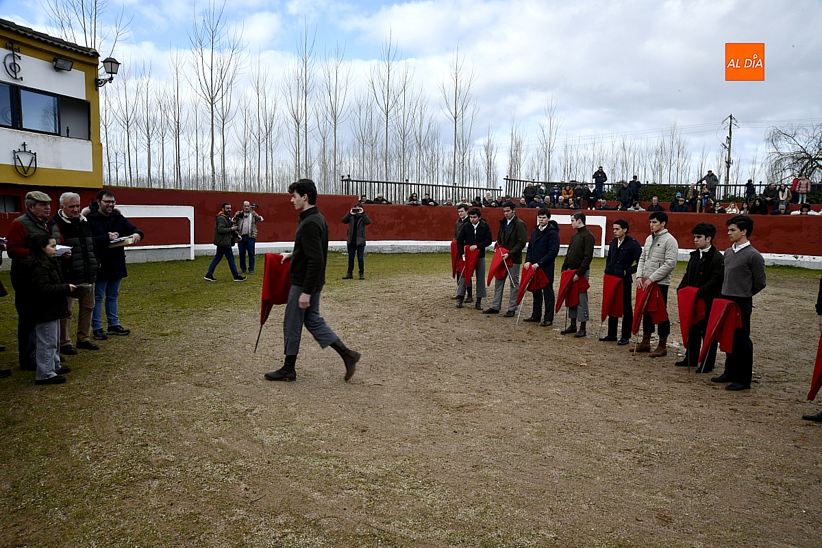 El Hotel Conde Rodrigo II de Ciudad Rodrigo acogió este sábado el quinto tentadero del Bolsín Taurino. Doce aspirantes, entre ellos 3 salmantinos se enfrentaron a seis exigentes vacas de la ganadería de Jesús Ramos en una prueba que, por un malentendido, se celebró sin la suerte de varas.