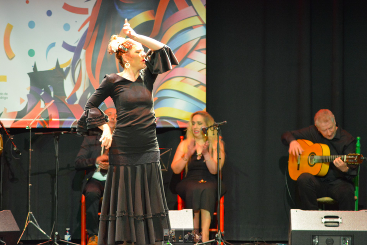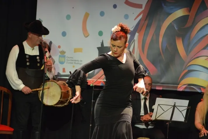 De nuevo, Cid Cebrián lleva la gaita y el tamboril al que se unen las percusiones, el pandero cuadrado de Peñaparda, el almirez y sobre todo, las castañuelas, los pitos del charro de Cipérez –porque así presenta a los suyo Cid Cebrián, con el lugar del que provienen- Iván García Pacheco, quien baila junto a la espléndida cantante de Sotoserrano Mayra Pérez Muñoz, la niña que se iba de ronda a cantar con su abuelo y cuya voz se trenza con la cantaora flamenca de Salamanca Dalila Salazar Motos. Ambas recorren los dolorosos romances de los toreros que van a morir en la plaza, sin hacer caso a las novias y madres que les avisan de su destino adverso y disfrutan de las canciones de la fiesta por bulerías. Junto a Dalila, su hermano Aarón Salazar Motos, uno de los músicos más originales de nuestra ciudad, hace también gala de esa maestría que no podía llevarse a cabo sin la serena presencia de una guitarra excepcional, la de Nano Serrano, que de nuevo es el mástil de esta nave con un mascarón de proa que sorprende al público que interrumpe el espectáculo con aplausos: la bailaora zamorana Alicia Almeida, quien parece en estado de gracia.