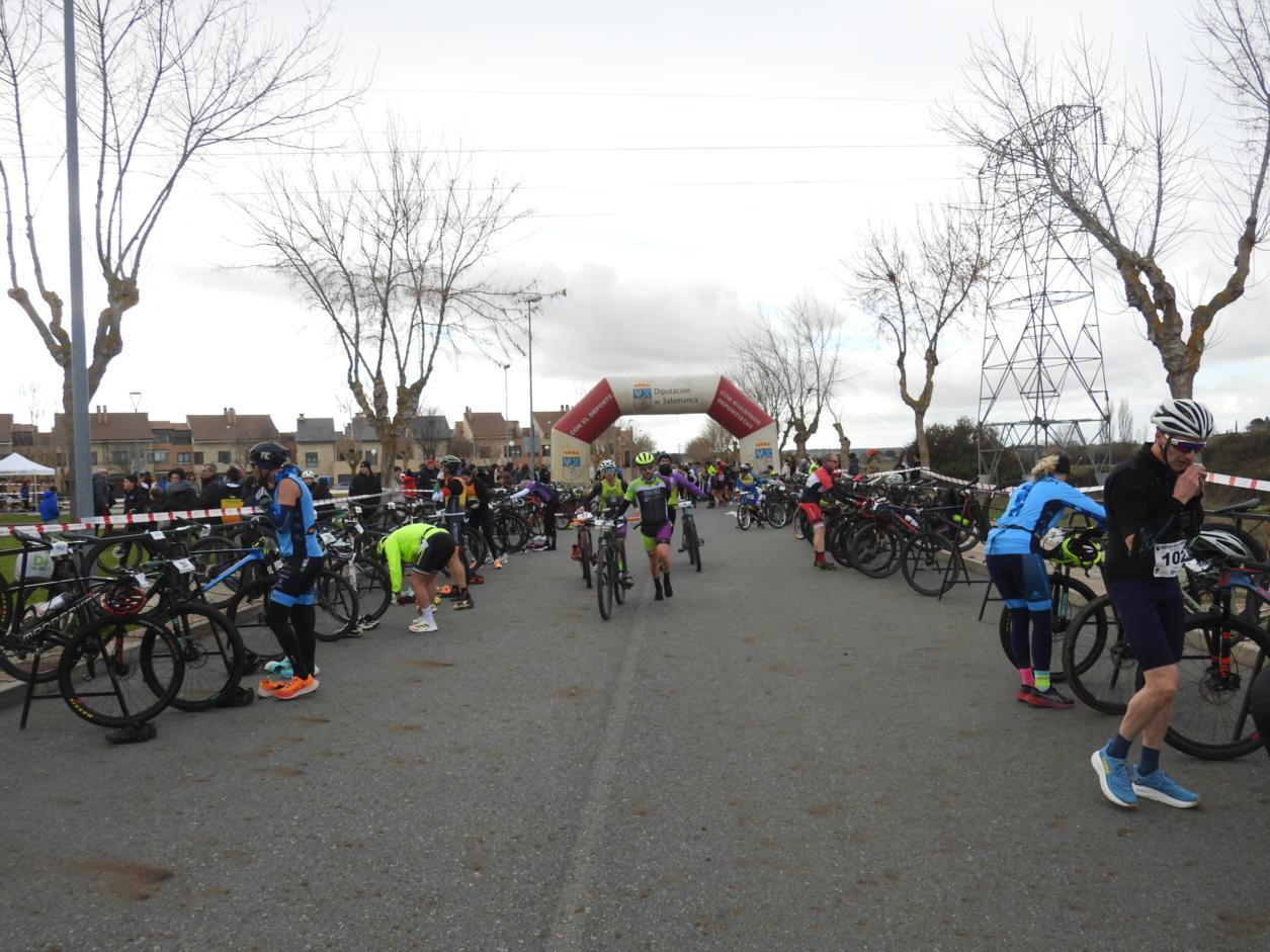 Todos los participantes han completado una distancia de 3 km a pie, seguidos de 16 km en bici y finalizando con 1,5 km de carrera a pie. Los más rápidos han sido: Carlos Rodríguez Esteban (Salmántica Triatlón Club) con un tiempo de 48:55 y Cristina Manso Pérez (Club Patabrava) con 1:05:54. En segunda posición han quedado David Bartolomé Delanoë (Salmántica Triatlón Club) con 48:55 y Cristina Rodríguez Rodríguez (CD Fisioterapia Roberto Ramos) con 1:06:49. La tercera posición la han completado Alberto Pinto González (DC Castellanos de Moriscos) con 50:12 y Vega Casas Orgaz (Escuela Triatlón Salmantina) con 1:09:21.