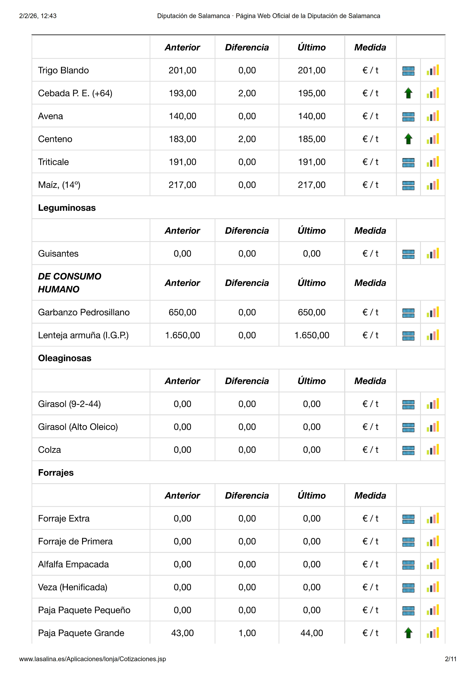 En la Mesa de Cereal se acordó una subida de 2,00 €/t para cebada (195 €/t) y centeno (185 €/t), el resto de categorías repitió cotizaciones, no así la paja en forrajes, que subió 1,00 €/t y se pone a 44,00 €/t.