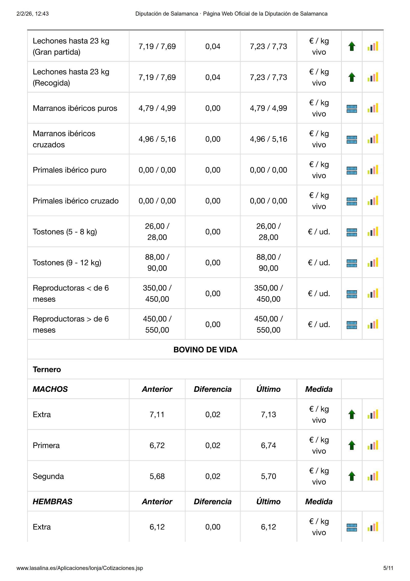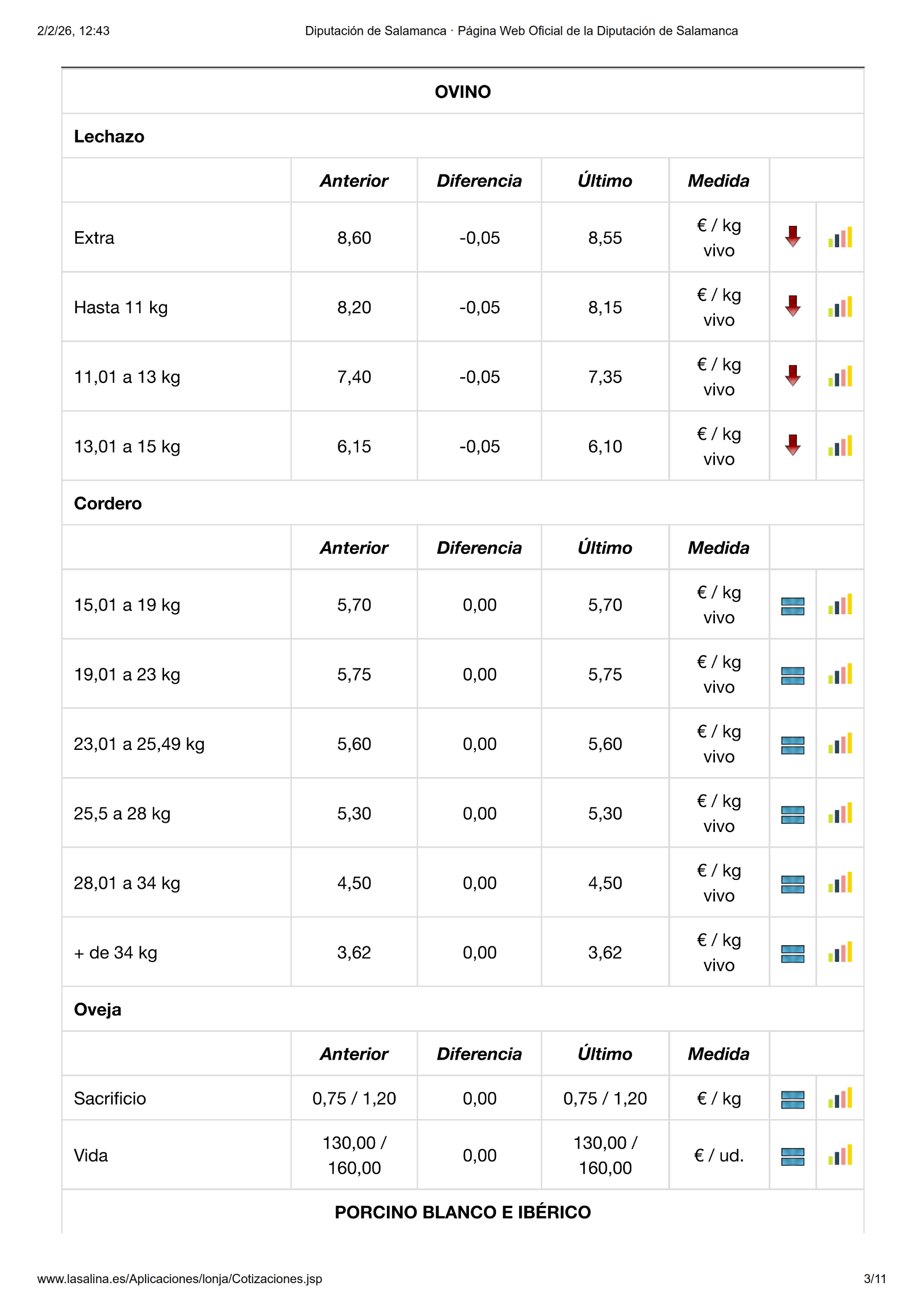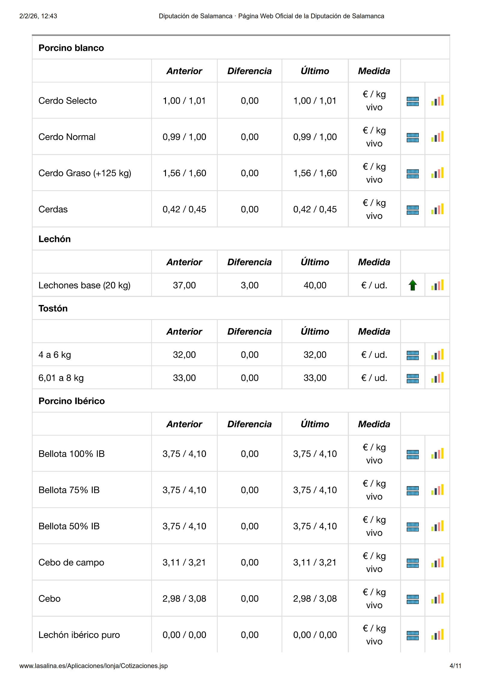 En la Mesa de Porcino blanco solo se mueven los lechones, en esta ocasión con una subida de 3,00 €/ud. por lo que ya cotizan a 40 €/ud., mientras que en la de Ibérico, la subida de los lechones es de 0,04 €/kg.