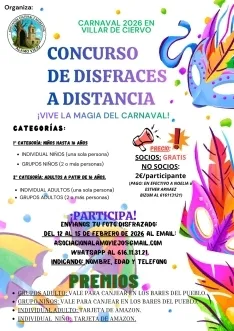 La Asociación Cultural y Recreativa Álamo Viejo ha organizado un concurso de disfraces en formato a distancia para celebrar el Carnaval 2026 en la localidad de Villar de Ciervo. La iniciativa, bajo el lema "¡Vive la magia del Carnaval!", invita a todos los vecinos a participar enviando una fotografía con su disfraz.