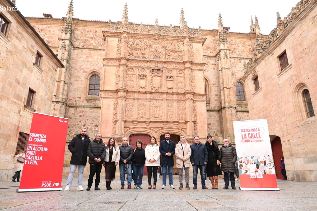 La fachada del edificio histórico de la Universidad de Salamanca ha sido el escenario elegido este martes para la presentación oficial de la candidatura del PSOE de Salamanca a las elecciones autonómicas del próximo 15 de marzo. La lista, encabezada por Fran Díaz, se ha postulado como la única alternativa capaz de "garantizar los servicios públicos, los derechos y las libertades" frente a lo que los socialistas han calificado como el "inmovilismo" de Alfonso Fernández Mañueco.