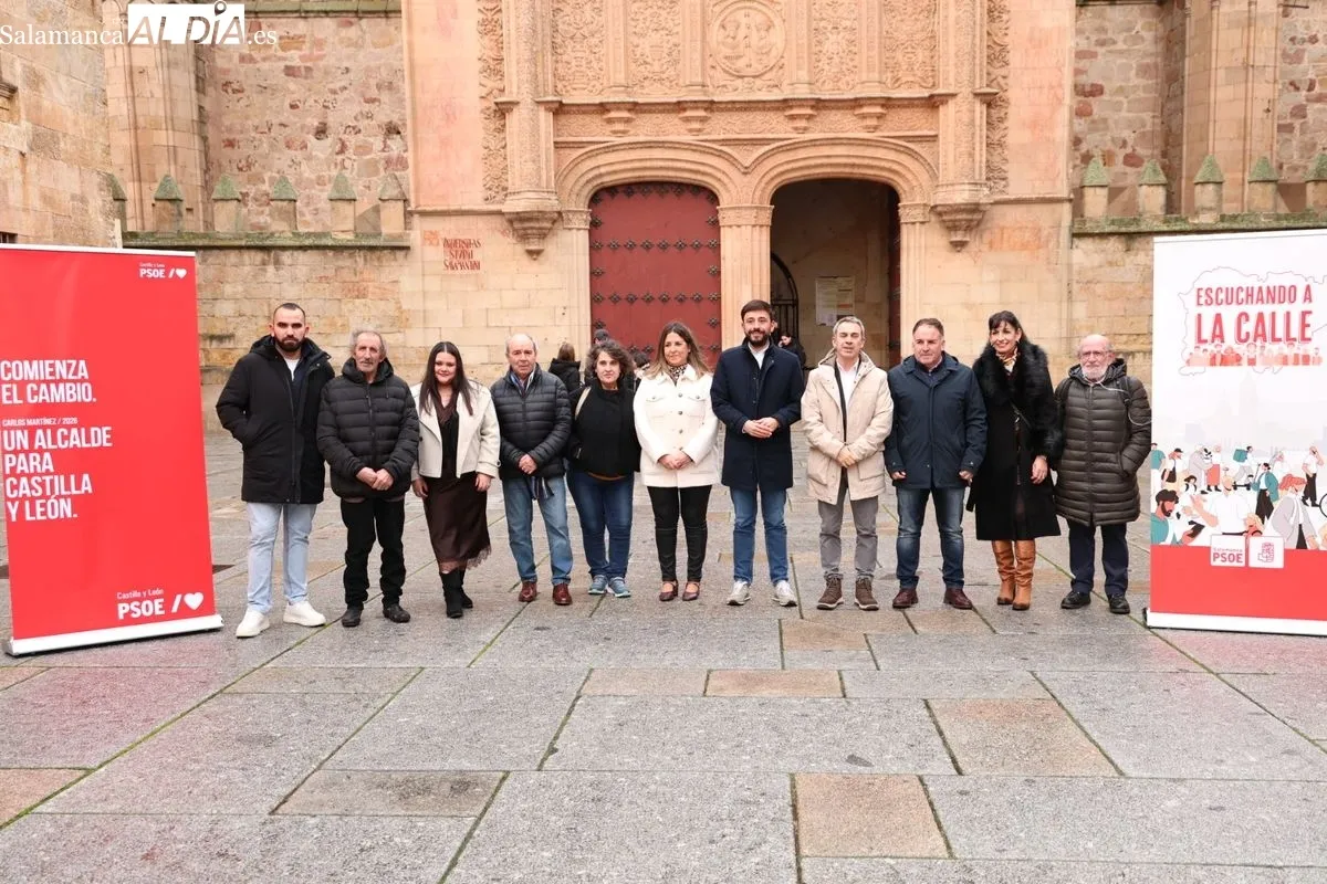 La fachada del edificio histórico de la Universidad de Salamanca ha sido el escenario elegido este martes para la presentación oficial de la candidatura del PSOE de Salamanca a las elecciones autonómicas del próximo 15 de marzo. La lista, encabezada por Fran Díaz, se ha postulado como la única alternativa capaz de "garantizar los servicios públicos, los derechos y las libertades" frente a lo que los socialistas han calificado como el "inmovilismo" de Alfonso Fernández Mañueco.
