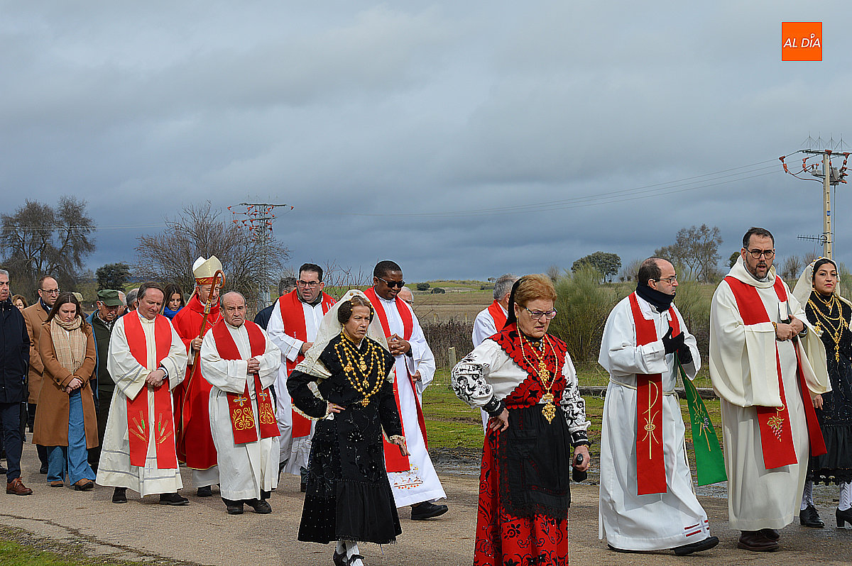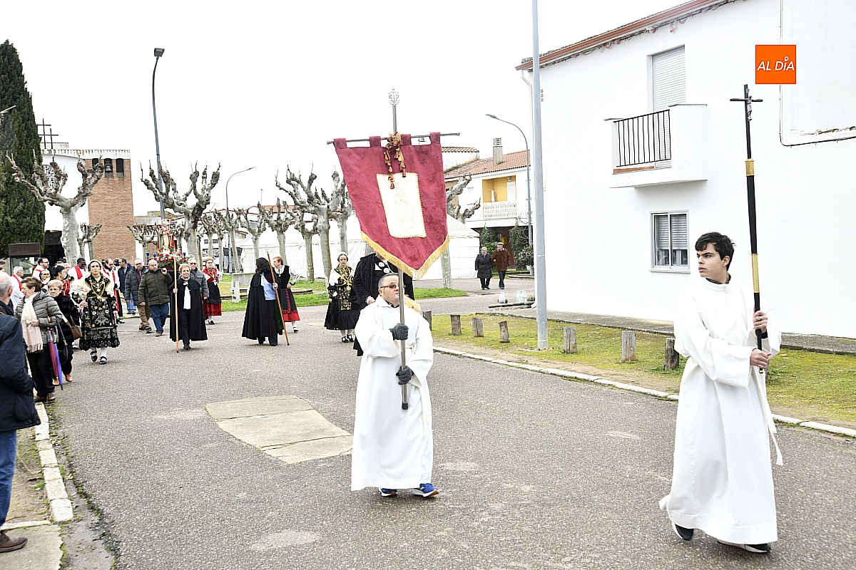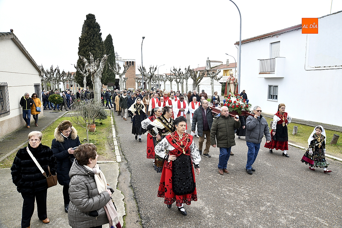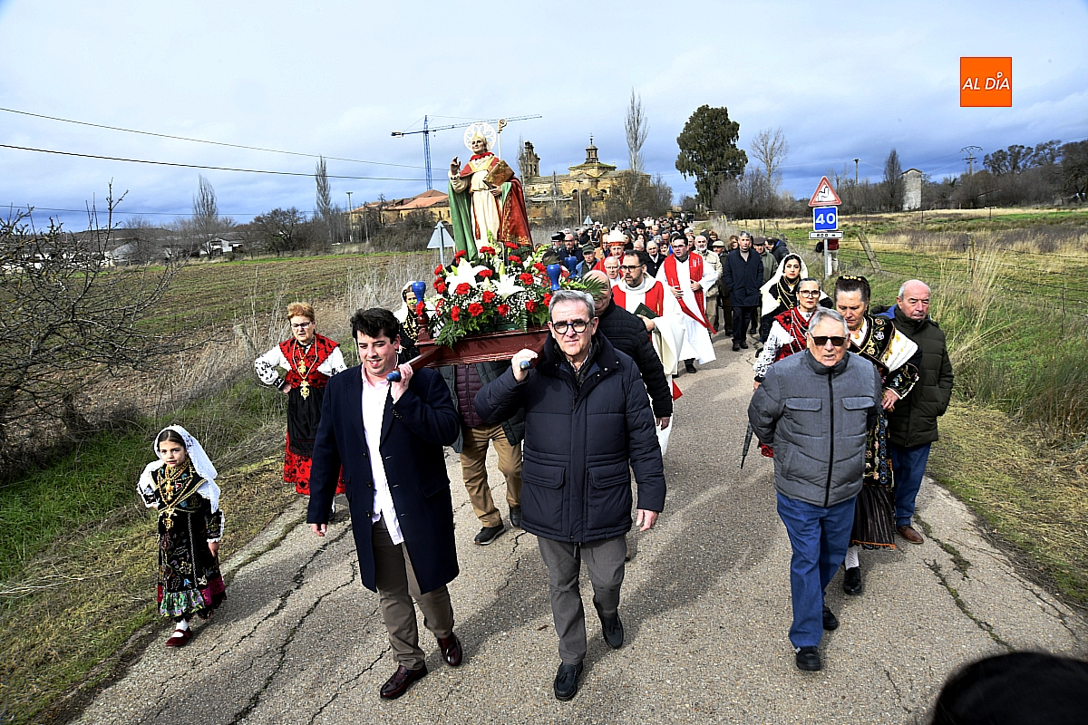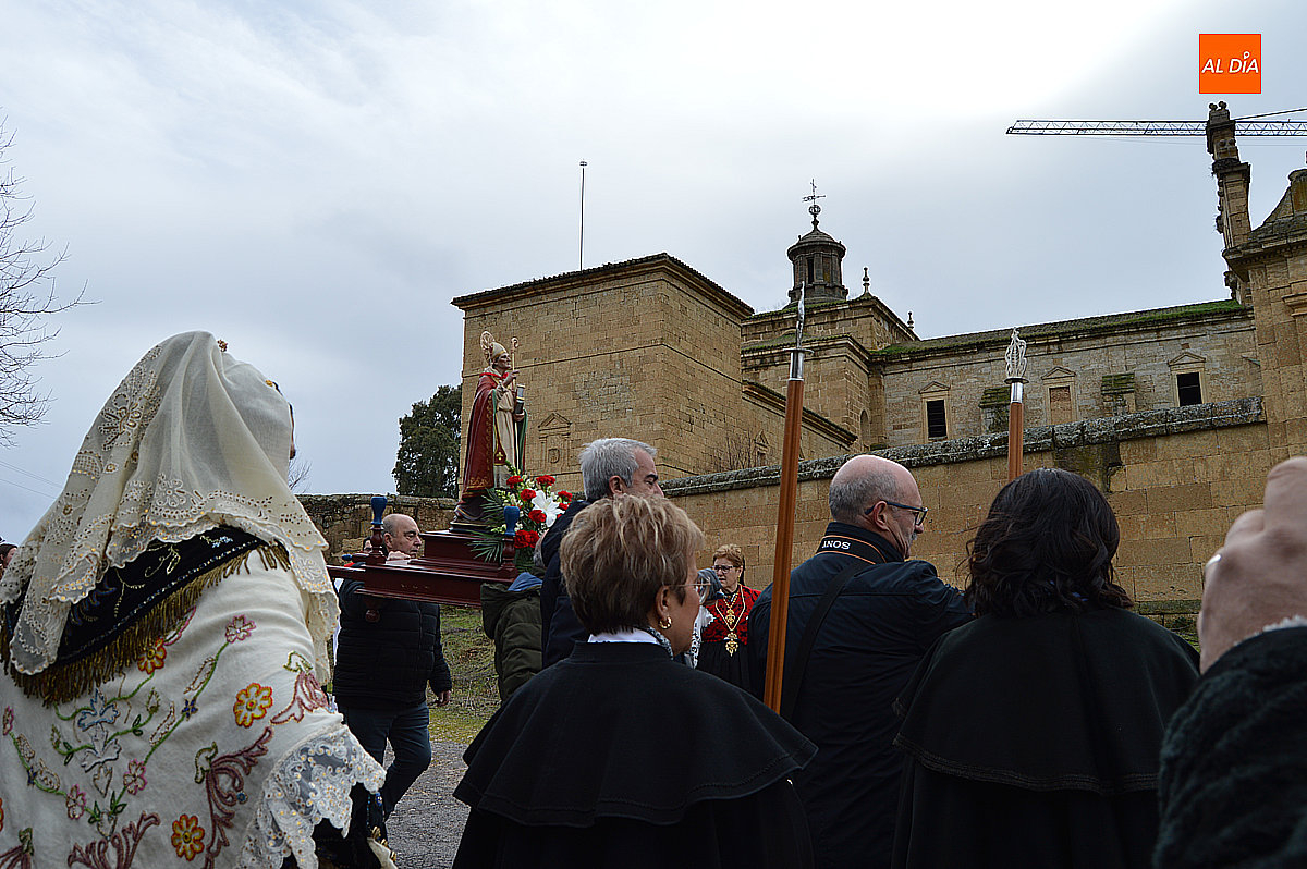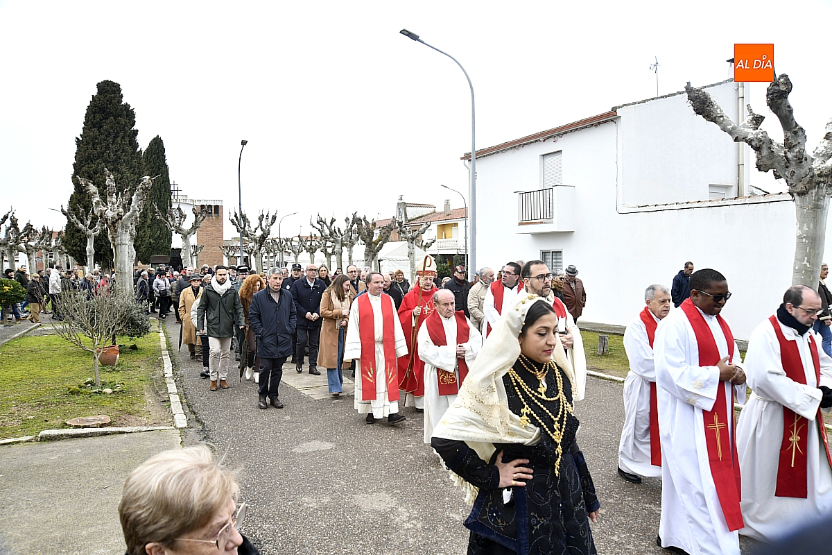 La procesión ha estado amenizada por un tamborilero y ha sido encabezada por dos monaguillos portando el estandarte, seguidos de las mayordomas de este año, Maribel Malmierca y Soledad Sánchez. Junto a ellas han participado varias mujeres ataviadas con el traje charro, reforzando el carácter cultural y tradicional de la celebración. A continuación, ha procesionado la imagen de San Blas, seguida de la comitiva religiosa, presidida por el obispo de la diócesis, Mons. José Luis Retana, y acompañada por párrocos de la zona.