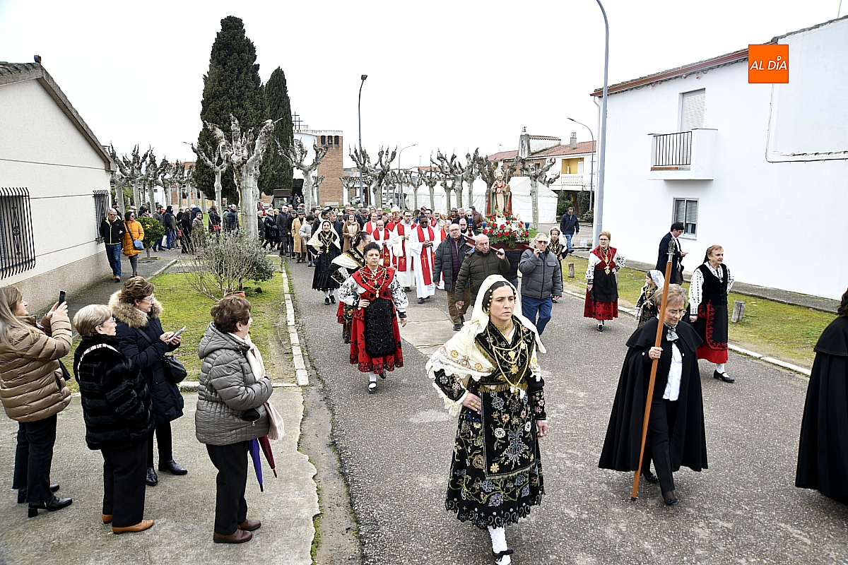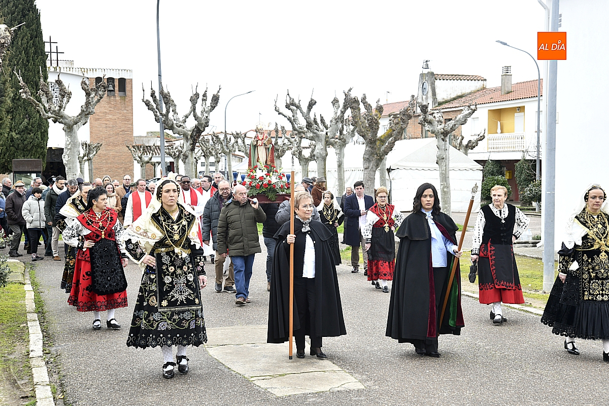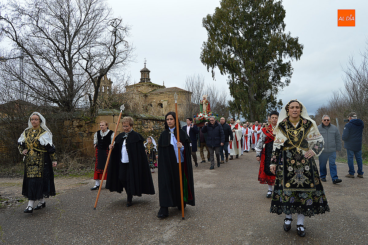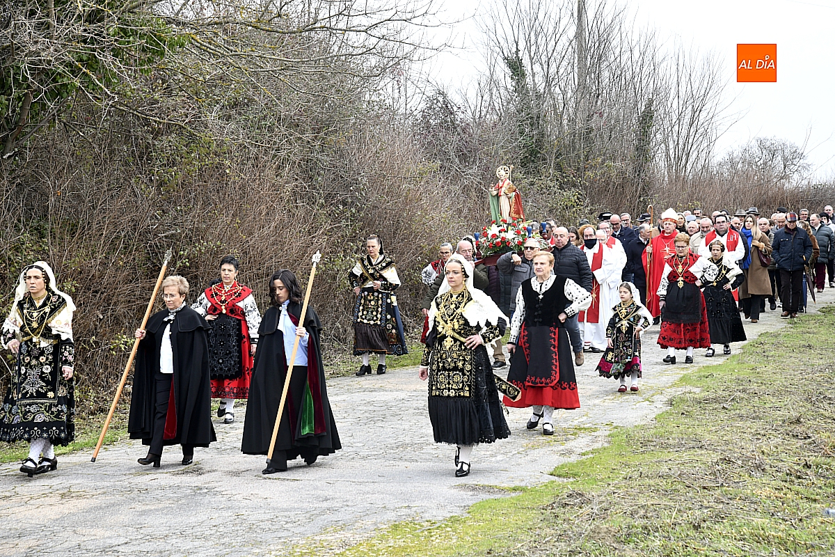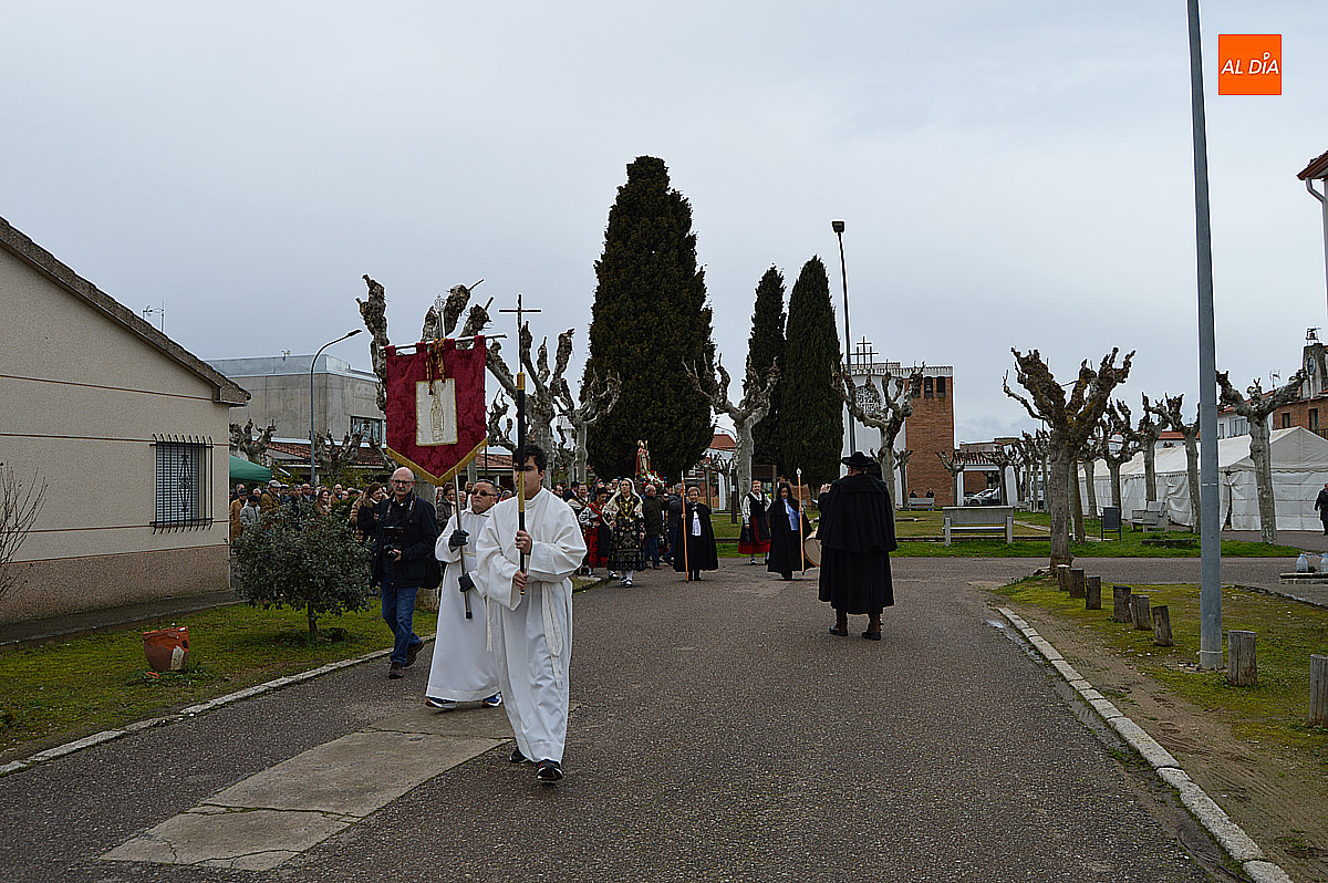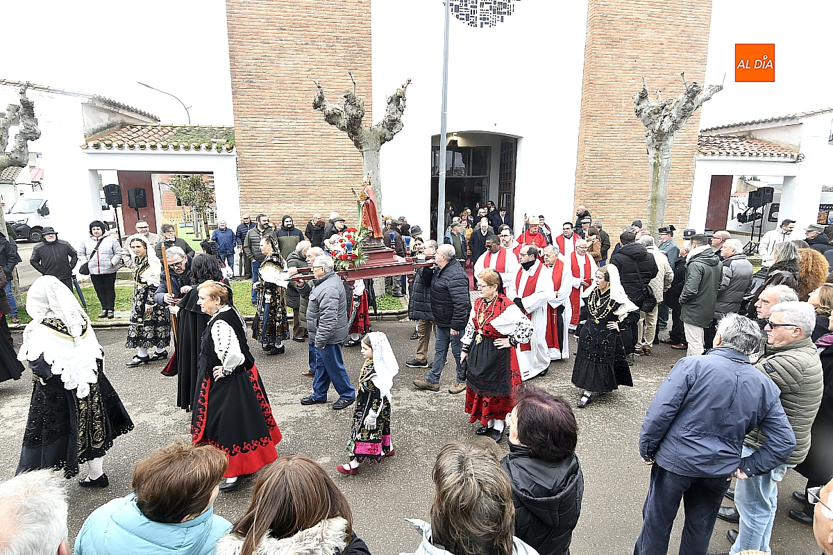 La procesión ha estado amenizada por un tamborilero y ha sido encabezada por dos monaguillos portando el estandarte, seguidos de las mayordomas de este año, Maribel Malmierca y Soledad Sánchez. Junto a ellas han participado varias mujeres ataviadas con el traje charro, reforzando el carácter cultural y tradicional de la celebración. A continuación, ha procesionado la imagen de San Blas, seguida de la comitiva religiosa, presidida por el obispo de la diócesis, Mons. José Luis Retana, y acompañada por párrocos de la zona.