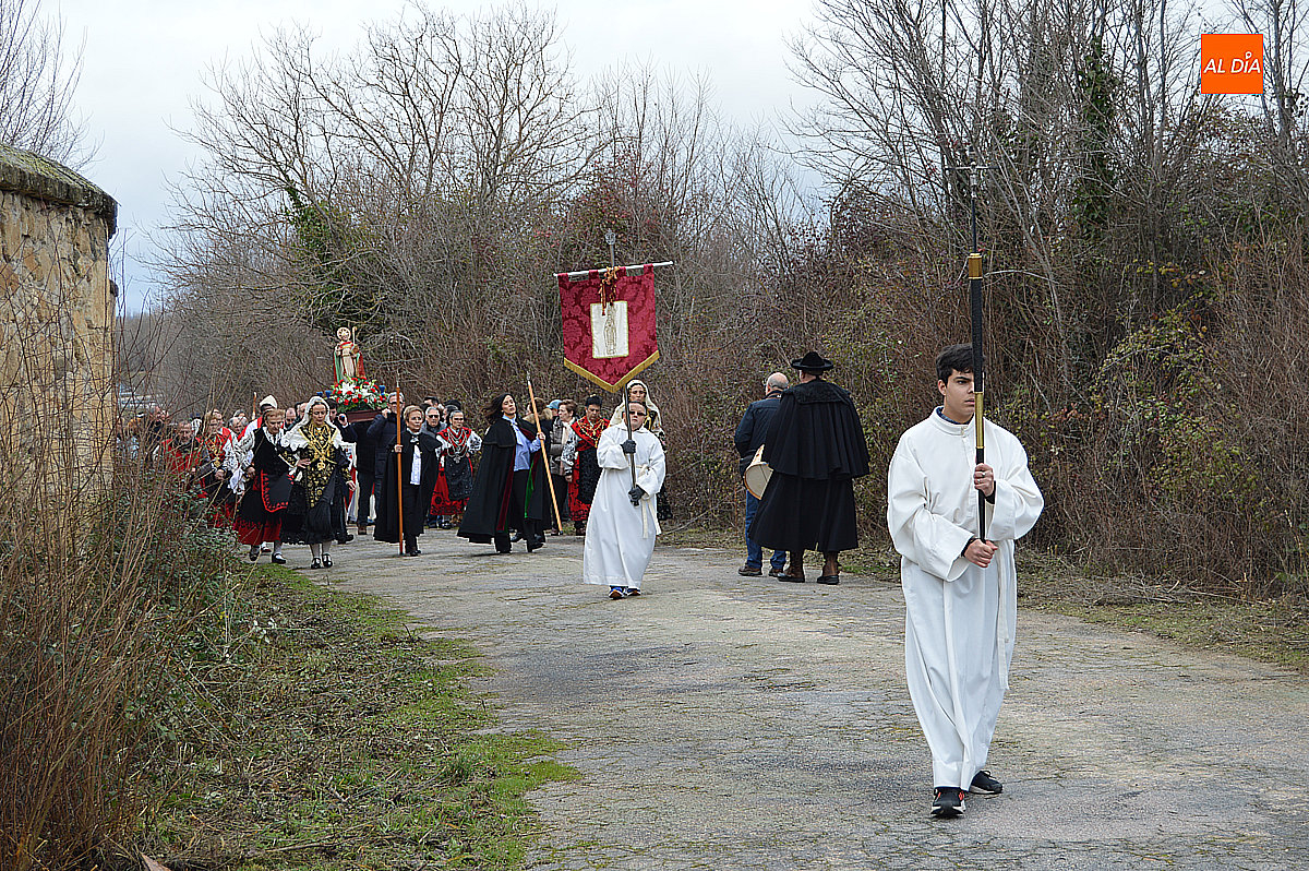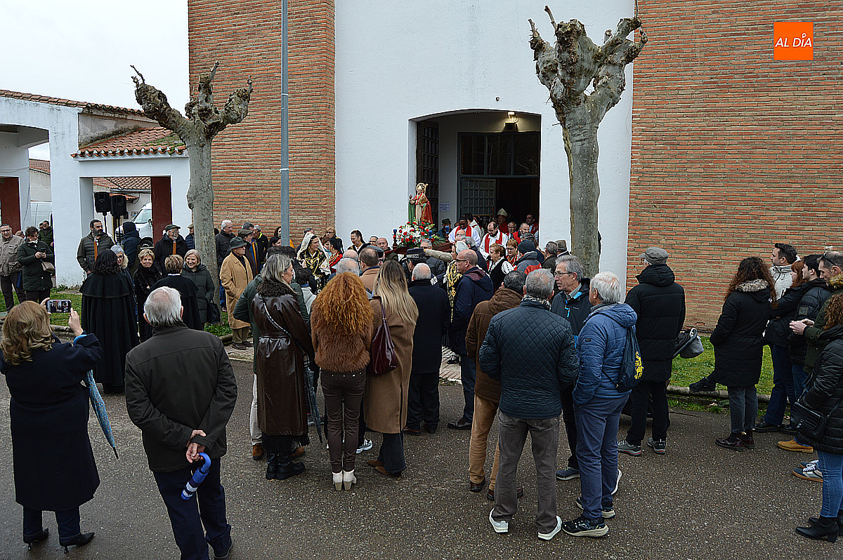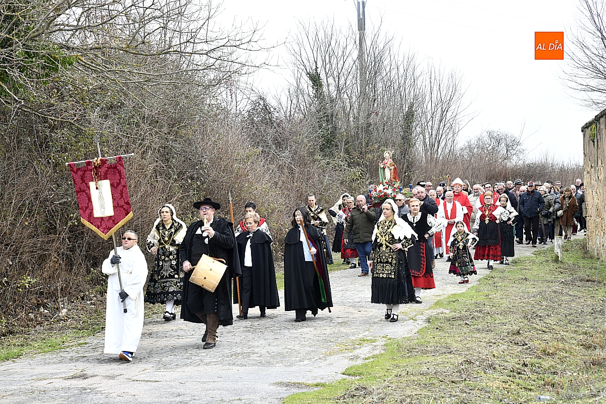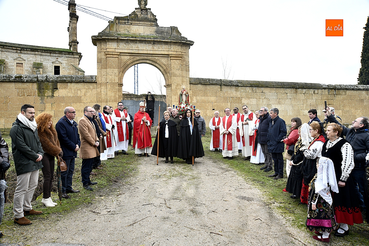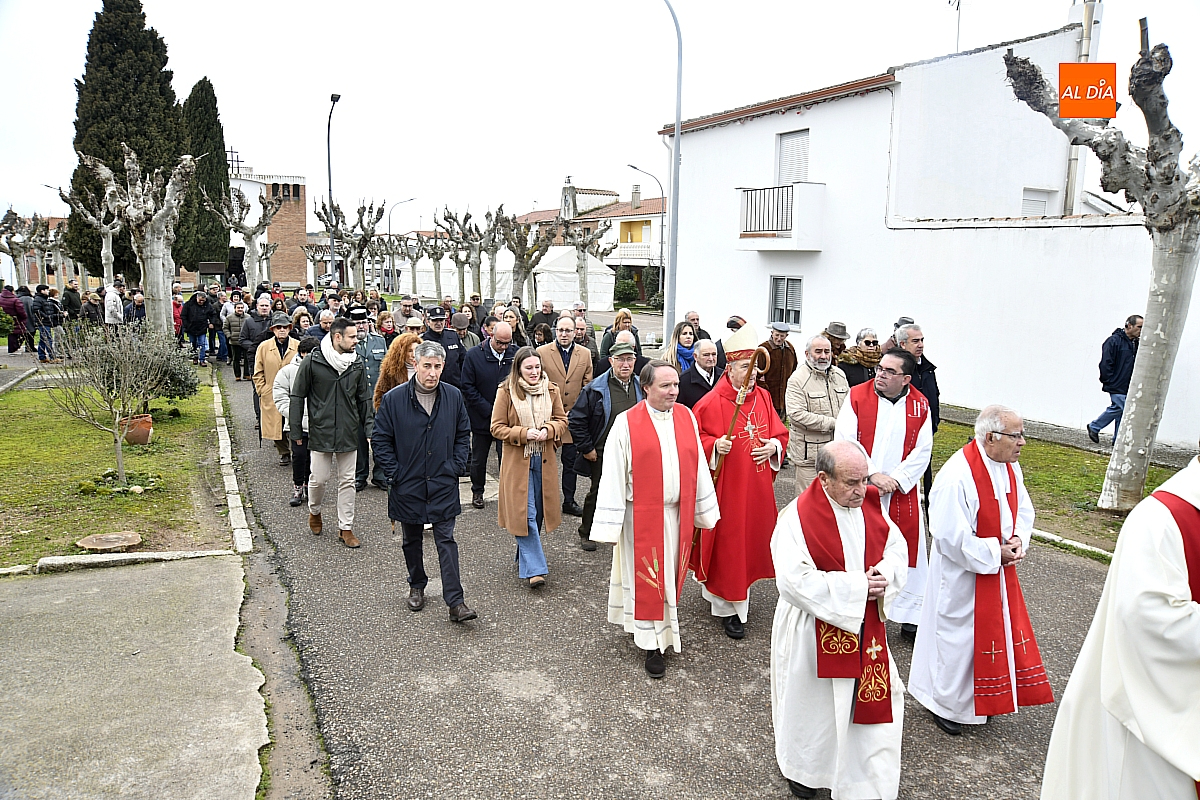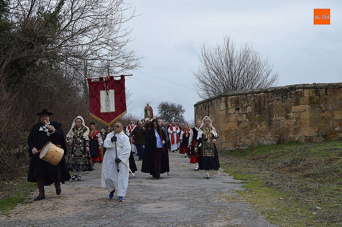 La procesión ha estado amenizada por un tamborilero y ha sido encabezada por dos monaguillos portando el estandarte, seguidos de las mayordomas de este año, Maribel Malmierca y Soledad Sánchez. Junto a ellas han participado varias mujeres ataviadas con el traje charro, reforzando el carácter cultural y tradicional de la celebración. A continuación, ha procesionado la imagen de San Blas, seguida de la comitiva religiosa, presidida por el obispo de la diócesis, Mons. José Luis Retana, y acompañada por párrocos de la zona.