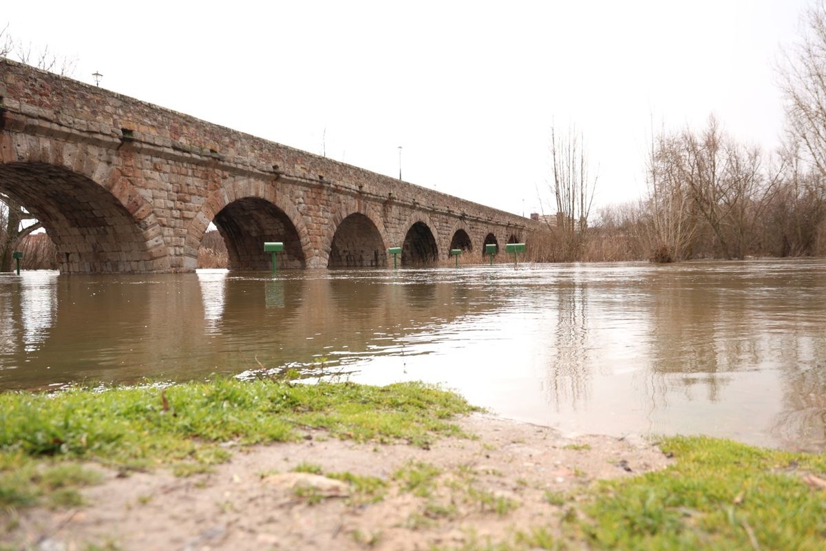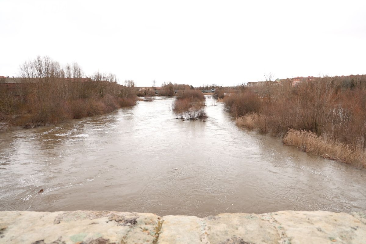 El aumento del caudal ha desdibujado los márgenes habituales del río en la capital, ofreciendo una estampa espectacular.