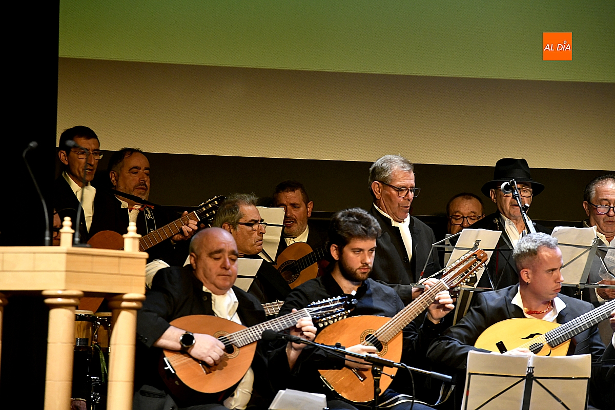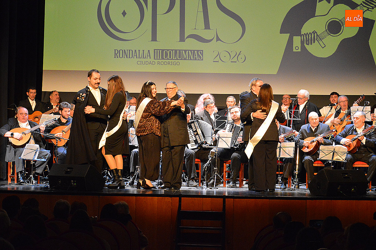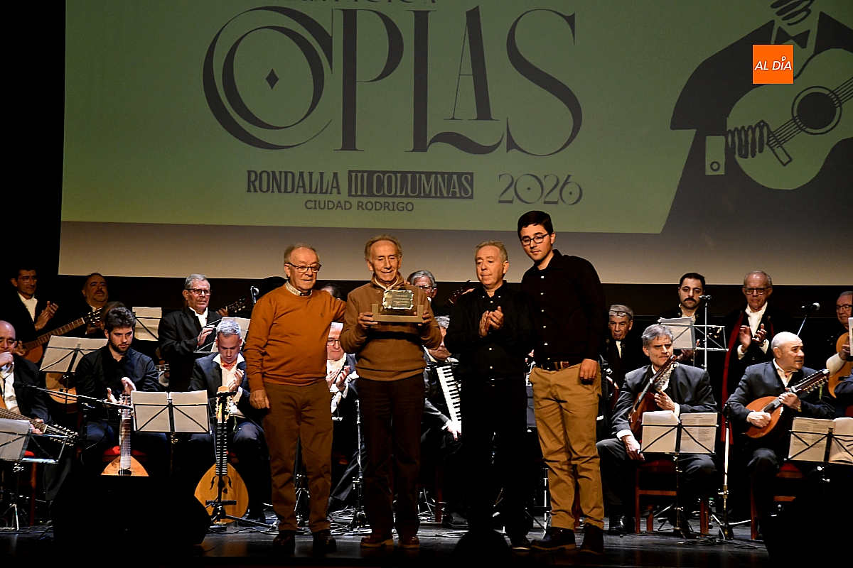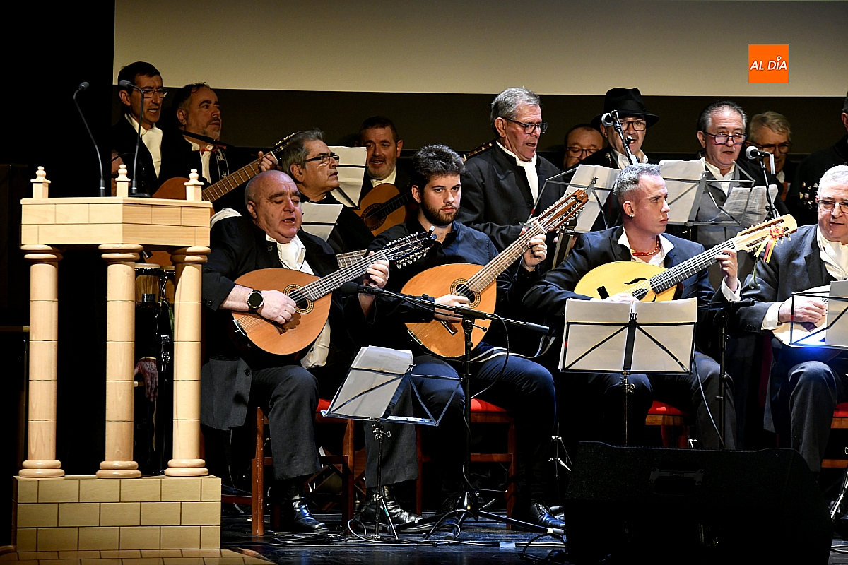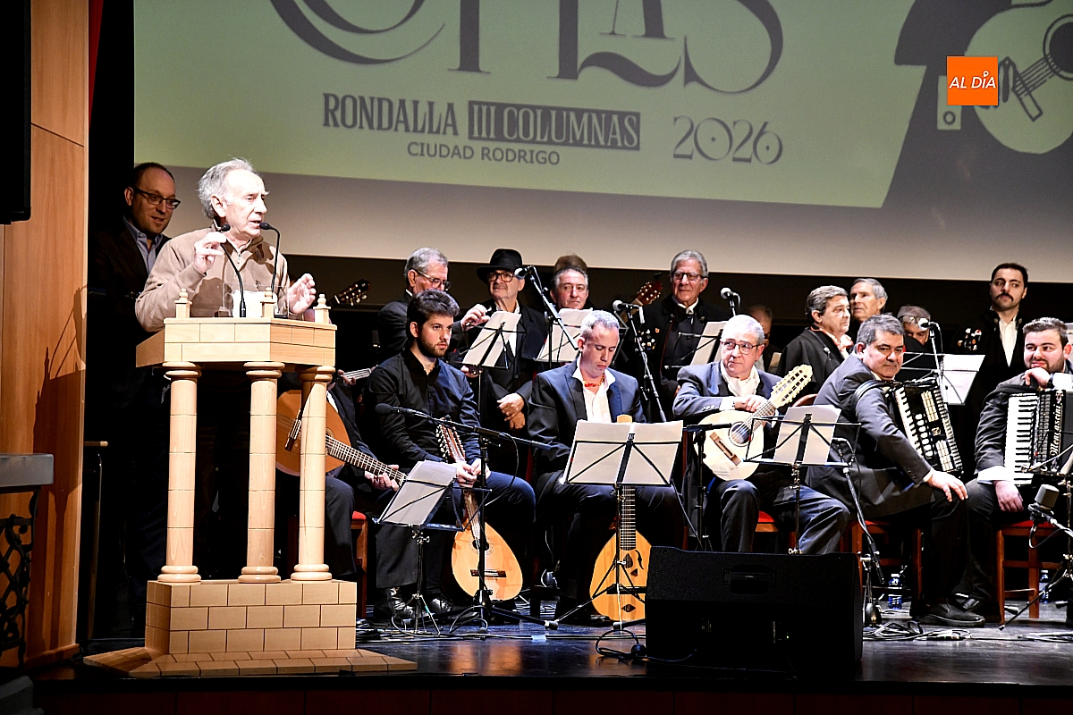 La Rondalla Tres Columnas presentó sus coplas con protagonismo de inteligencia artificial bajo directrices mirobrigenses y homenajeando el consistorio a Gabriel de Aller, veterano constructor de “tablaos”