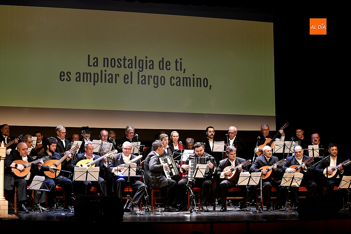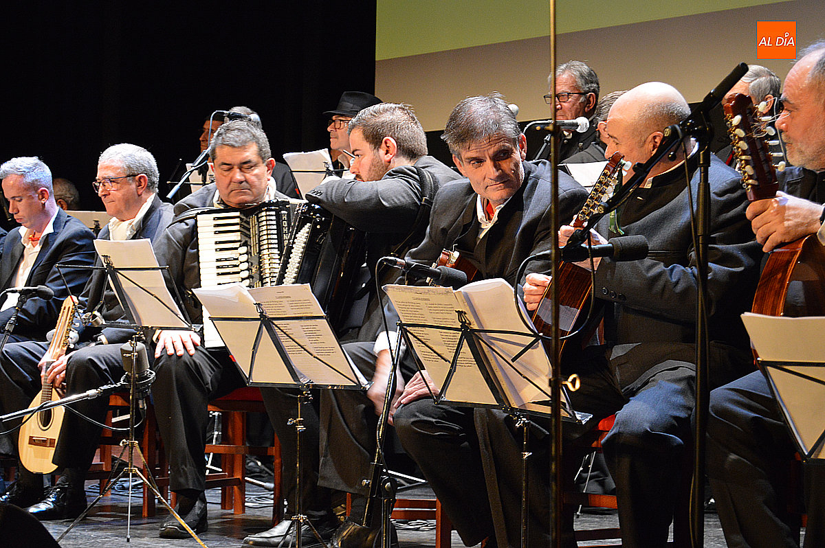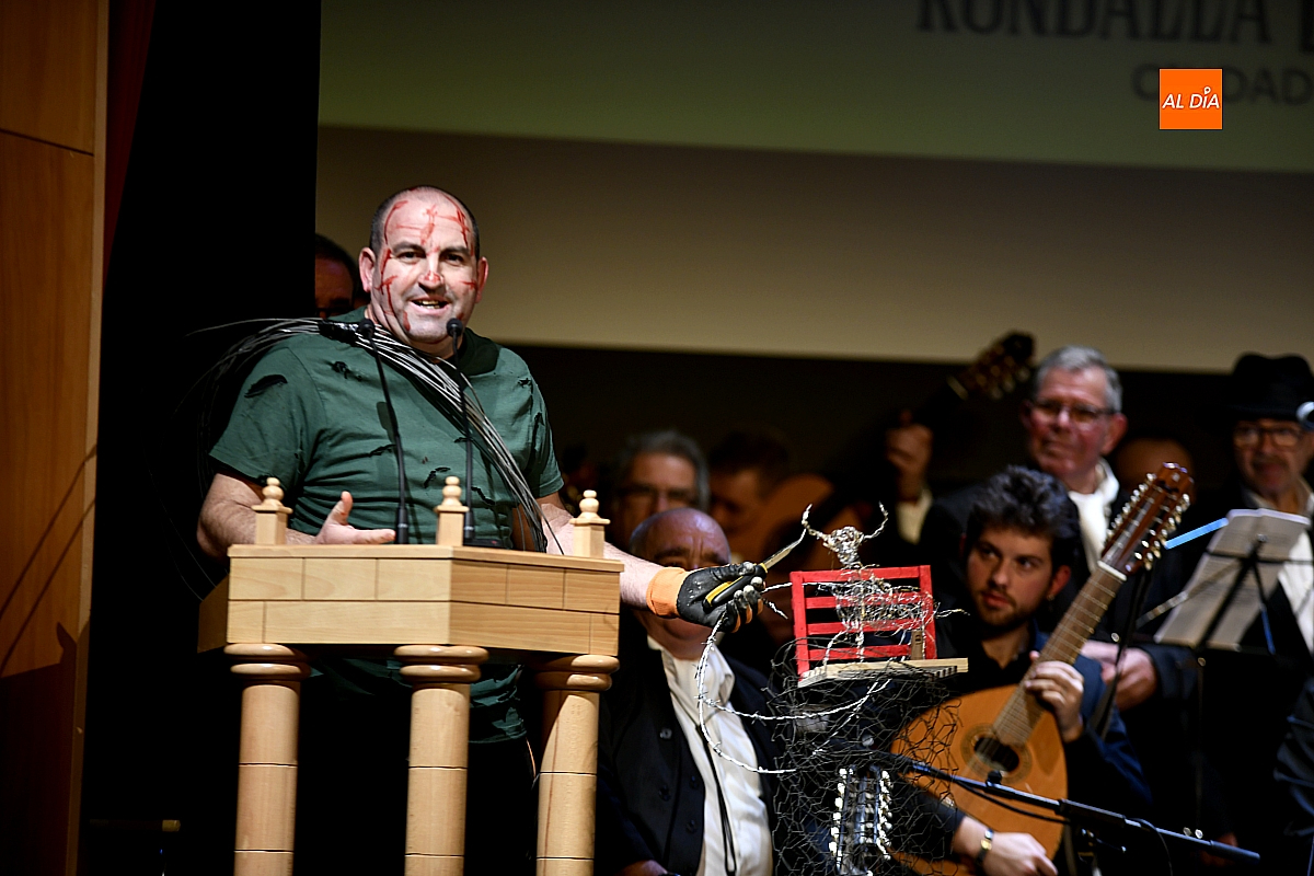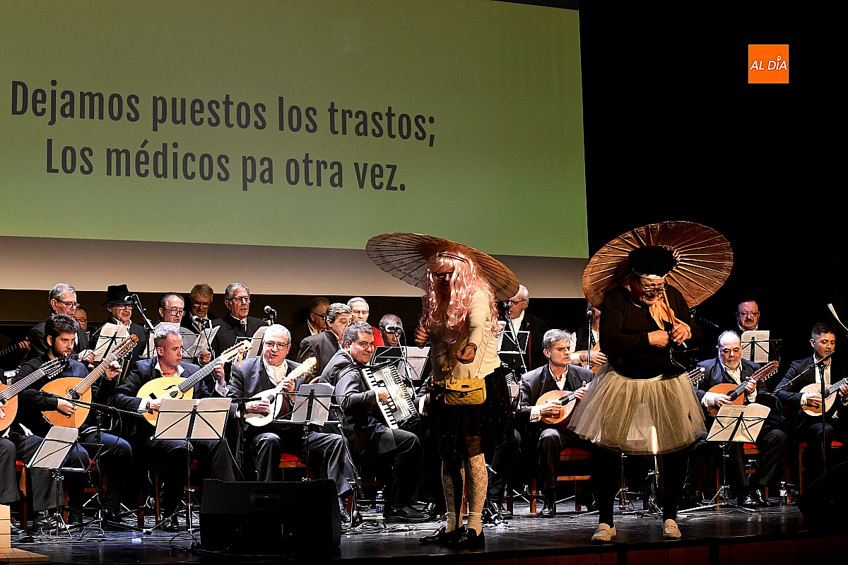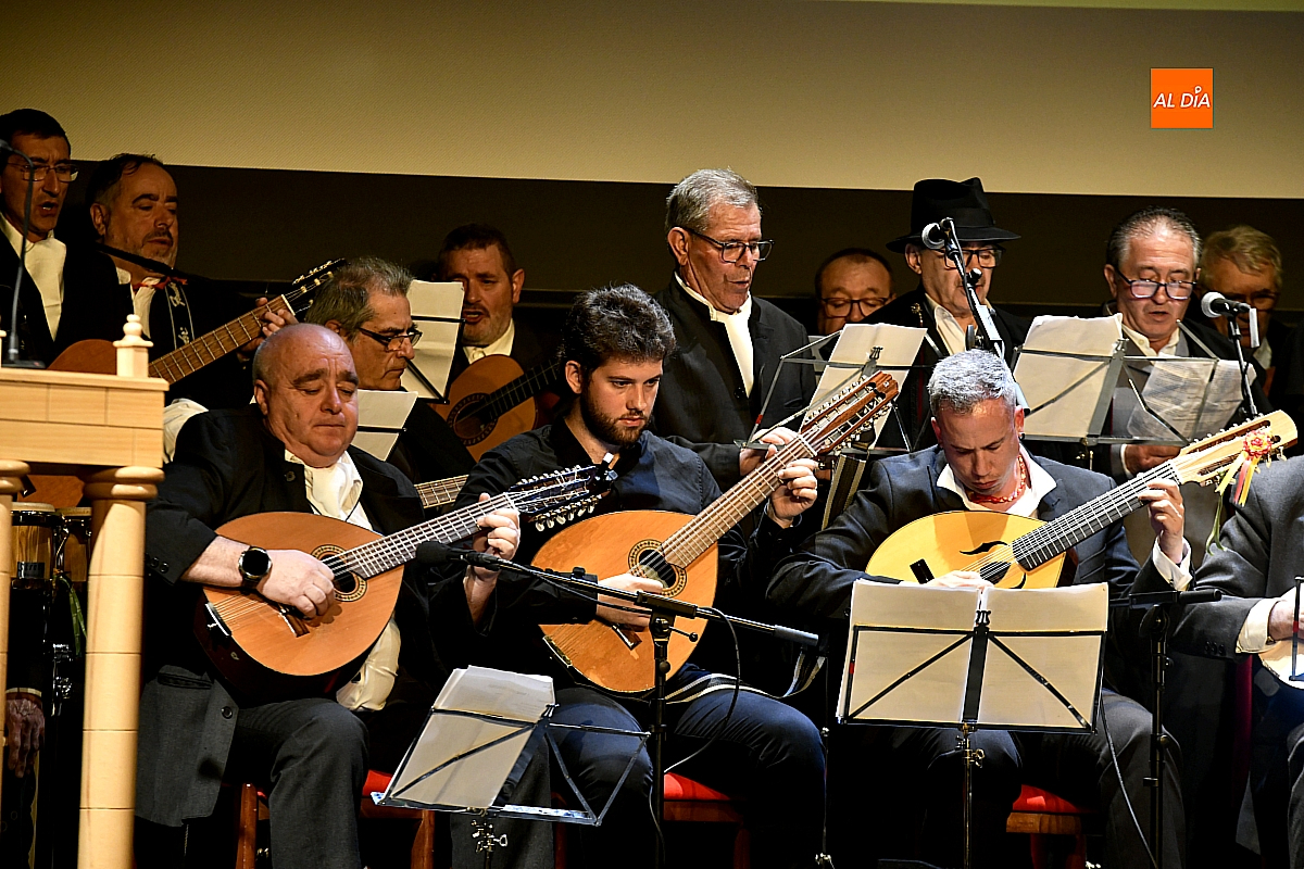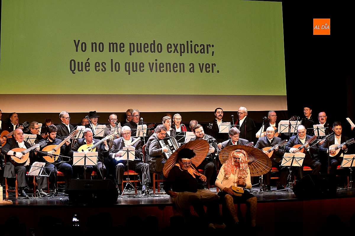 La Rondalla Tres Columnas presentó sus coplas con protagonismo de inteligencia artificial bajo directrices mirobrigenses y homenajeando el consistorio a Gabriel de Aller, veterano constructor de “tablaos”
