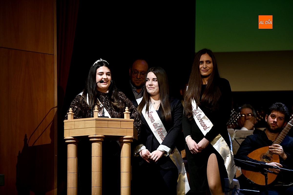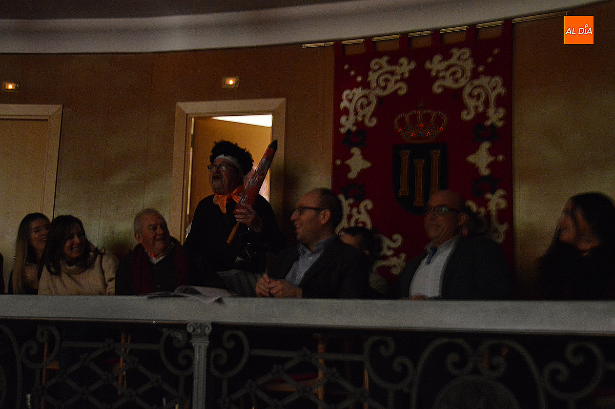 Como colofón, la Corte de Honor subió al escenario para dirigir unas palabras y, en un alarde de complicidad festiva, se animó a bailar junto a los murgistas. Cerró el acto el alcalde mirobrigense, quien agradeció y felicitó a los miembros de la Rondalla, no sin dejar constancia —en tono de amable reproche— de que el propio consistorio y su corporación vuelven a ser protagonistas destacados en muchas de las coplas.