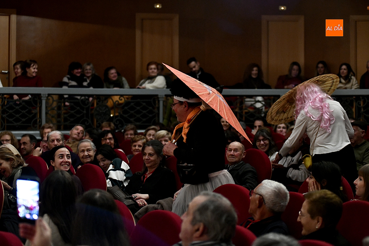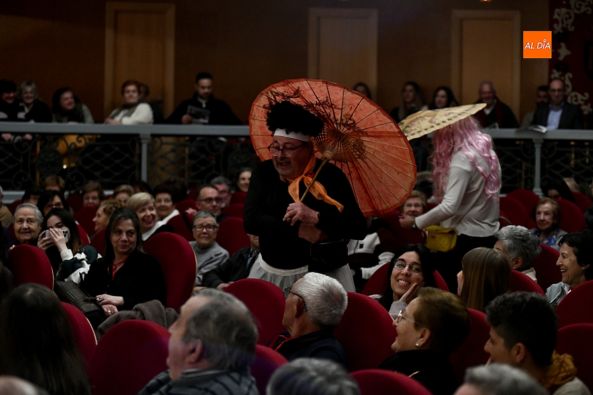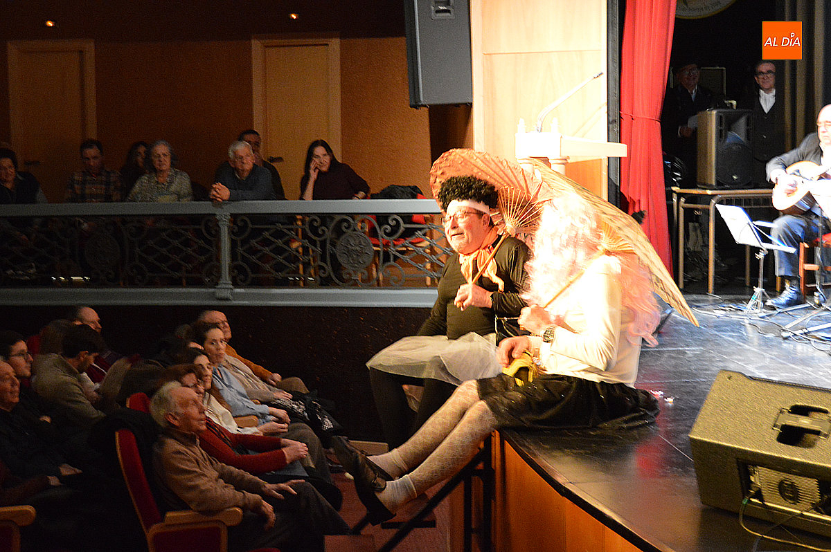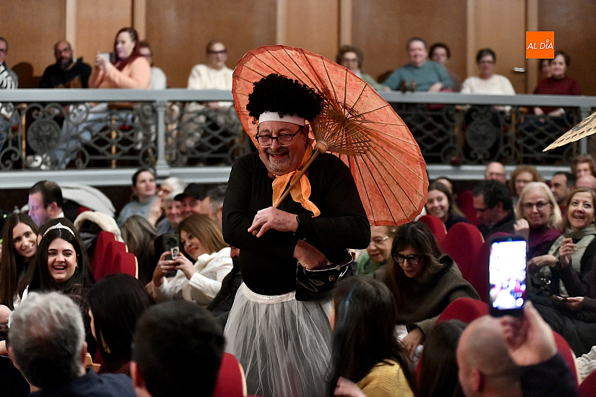 Sobre el escenario desfilaron escenas y personajes cuidadosamente hilados. Destacó la aparición de una aspirante a murguista de origen oriental, que se presentó en su lengua materna, dejando entrever apenas algunas palabras reconocibles y la ubicación de sus supuestos negocios en la ciudad, lo suficiente para provocar carcajadas gracias a un guion medido y eficaz. No faltó tampoco un imitador interpretado por Jesús Molinero del artista local Sergio Alonsoque mostró una maqueta de la escultura dedicada al Carnaval y explicó, entre bromas, el estado de su trabajo.